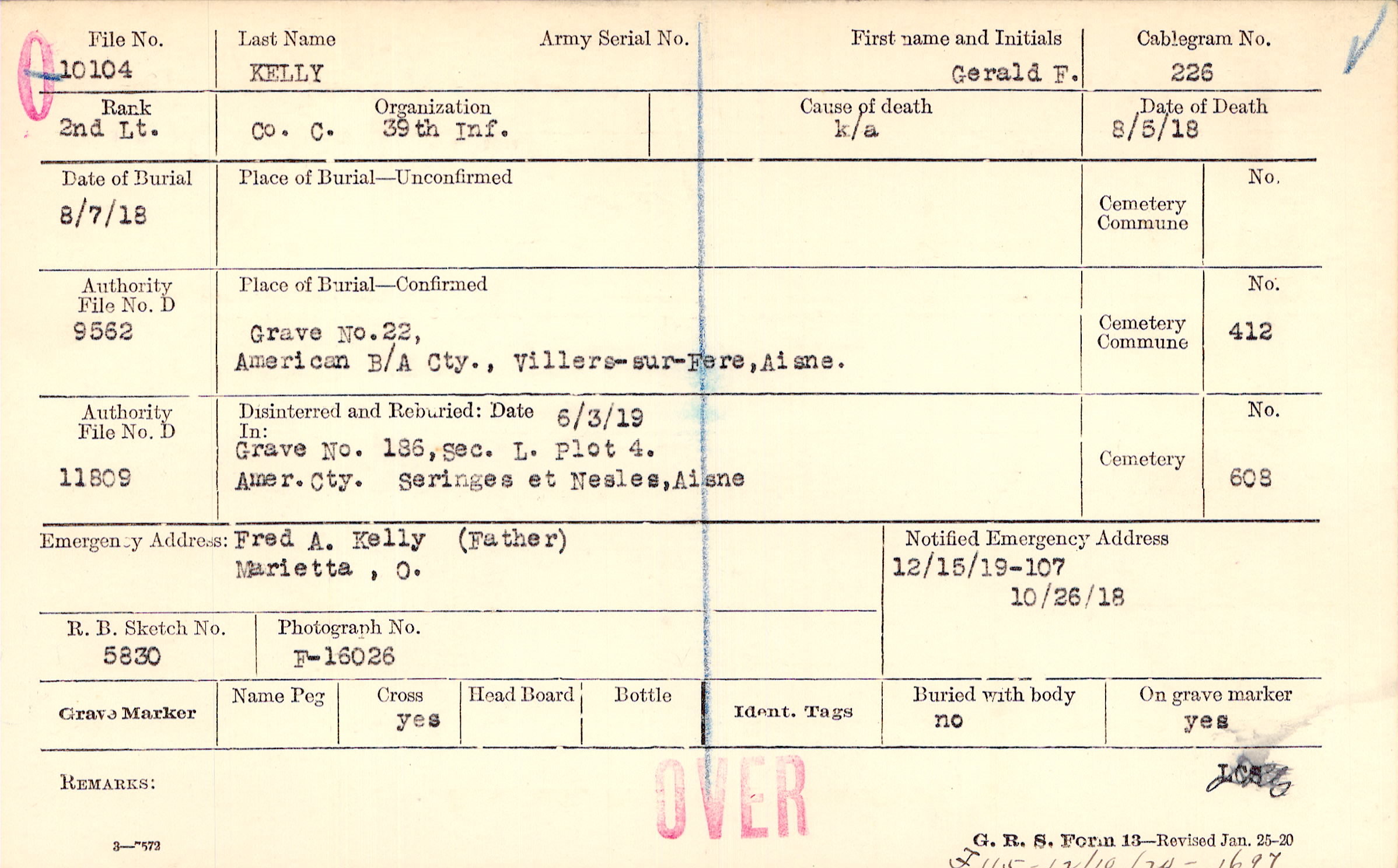 Grave 22, American B/A Cty., Villers-sur-Fere, Aisne.