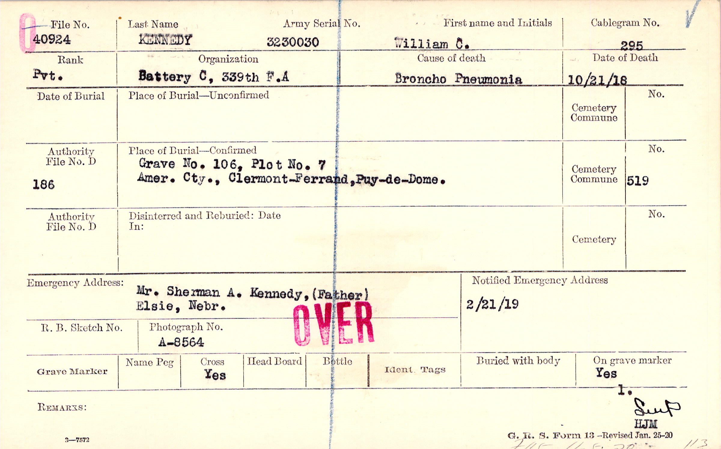 Grave 106, Plot 7, Amer. Cty., Clermont-Ferrand, Puy-de-Dome