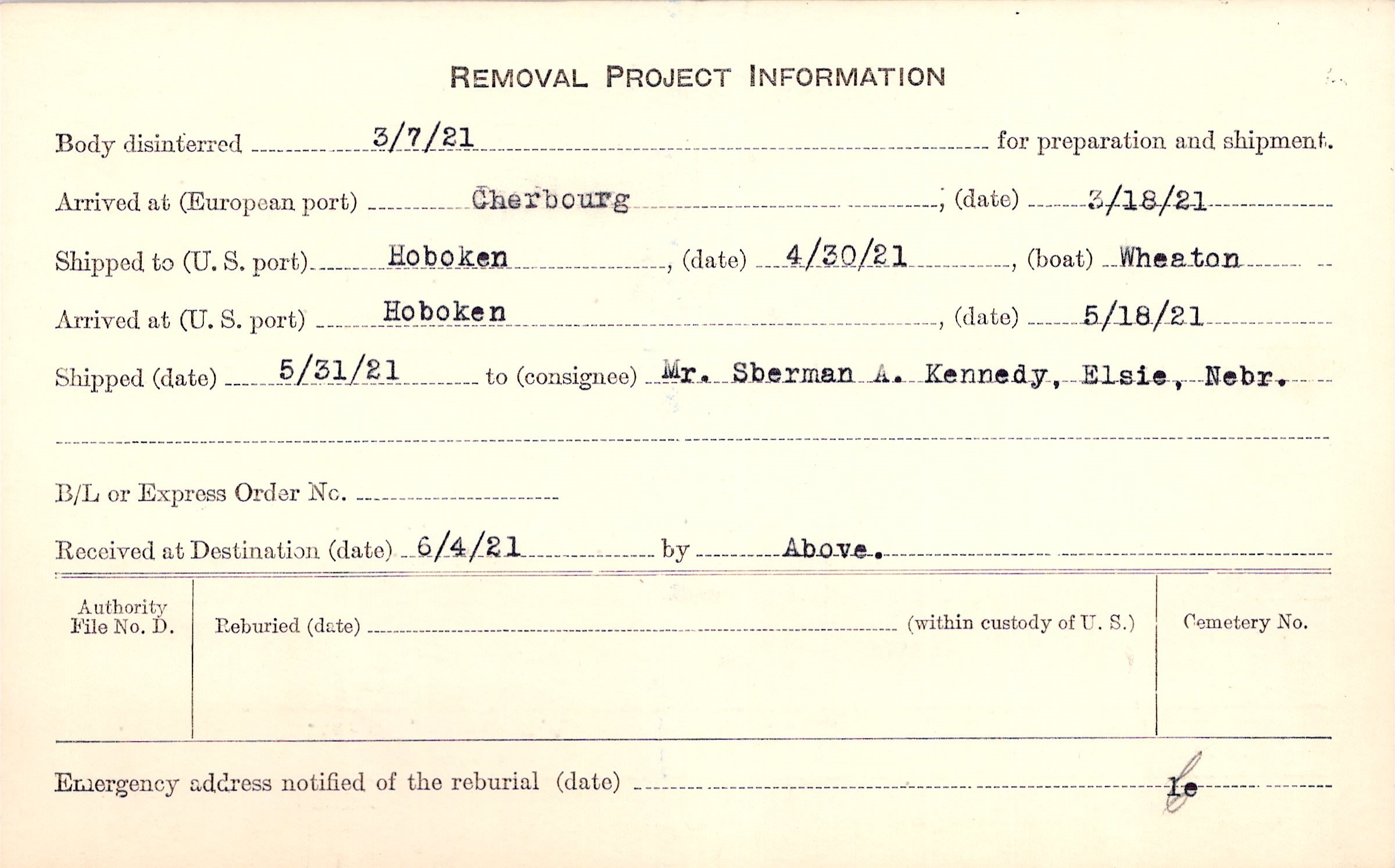 Mr. Sherman A. Kennedy, (Father), Elsie, Nebr.