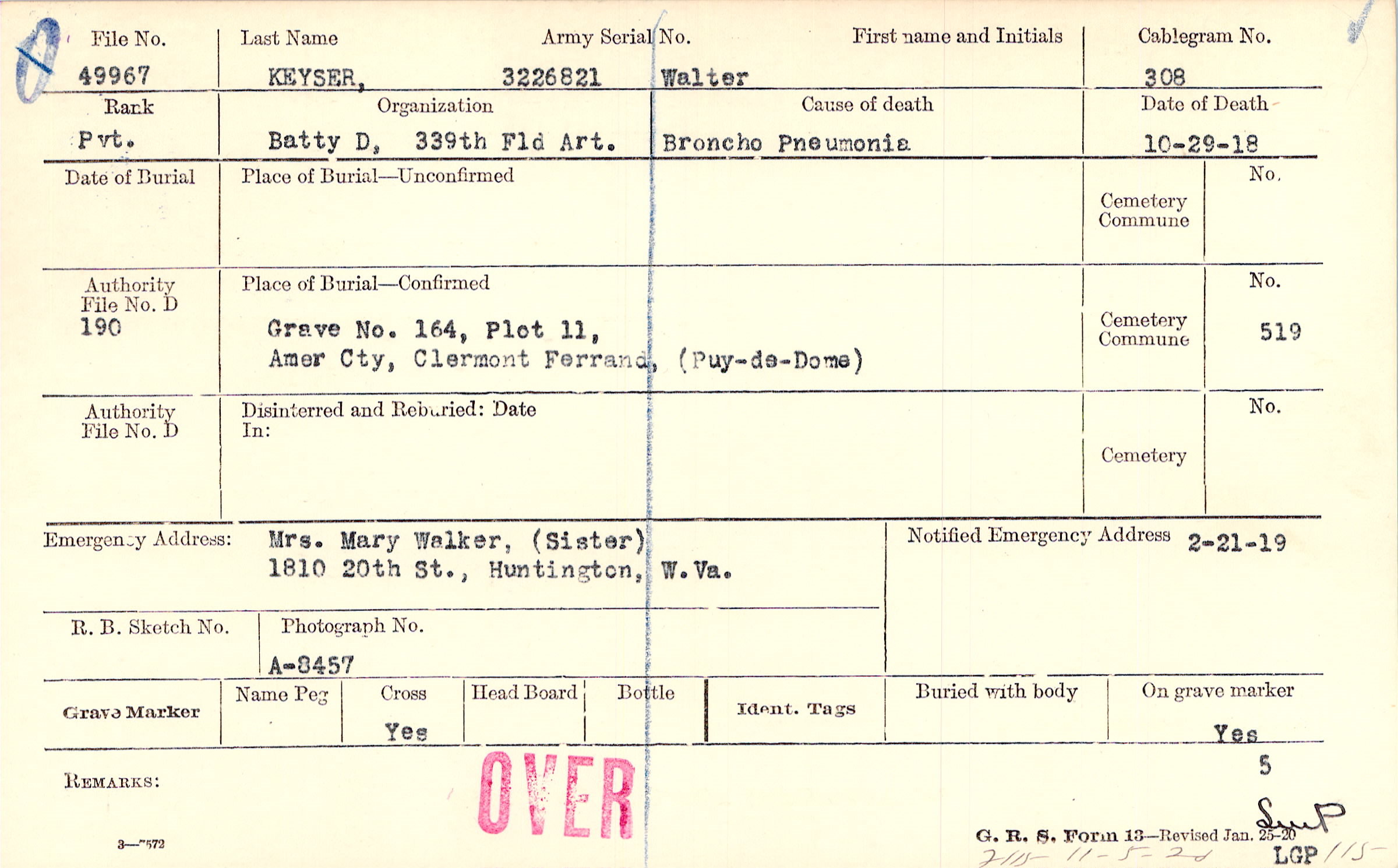 Mrs. Mary Walker, (Sister), 1810 20th St., Huntington, W. Va.
