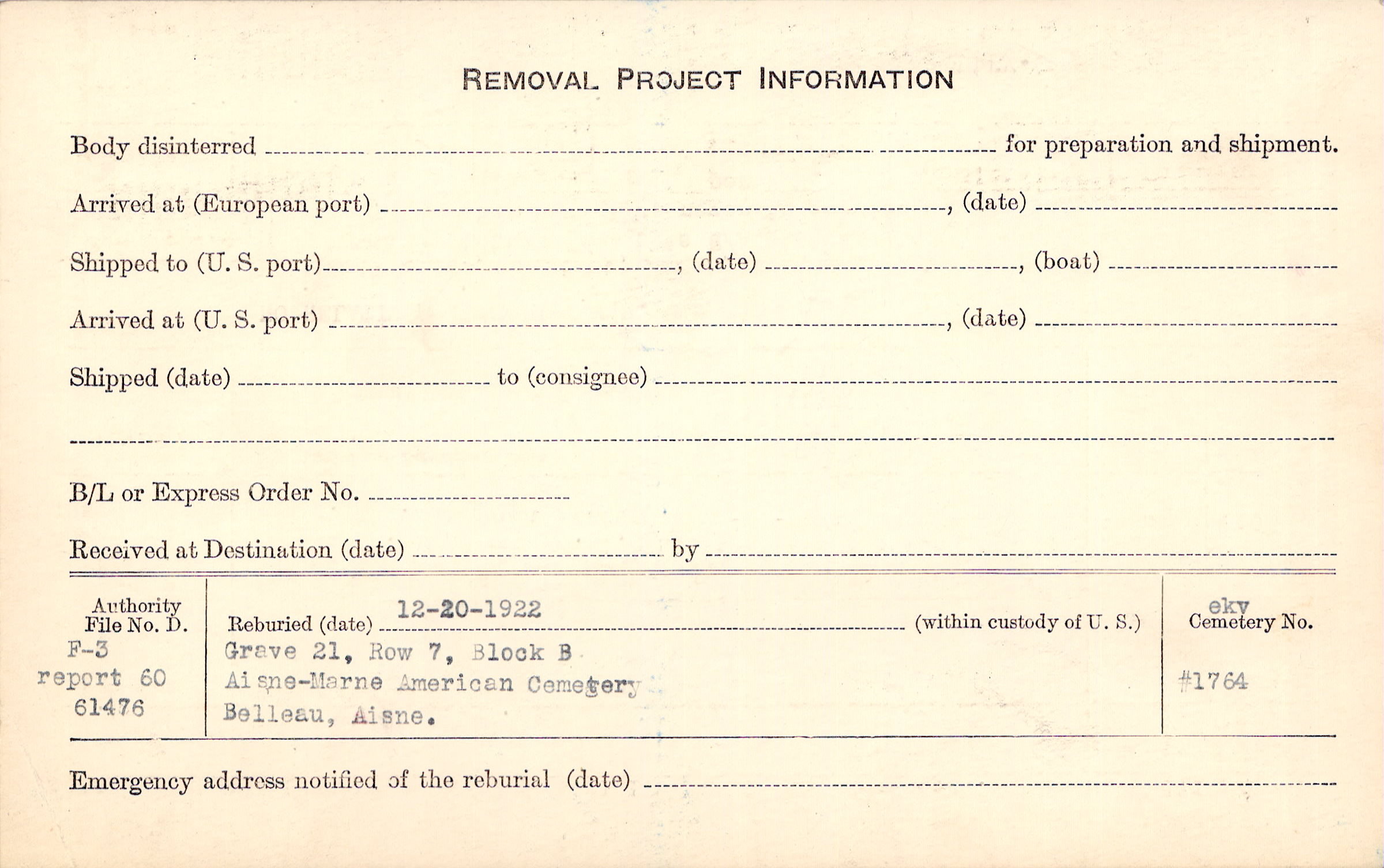 Grave 10, Plot 1, Enlisted Mens Section, Amer. Cty., Clermont Ferrand, Puy-de-Dome.