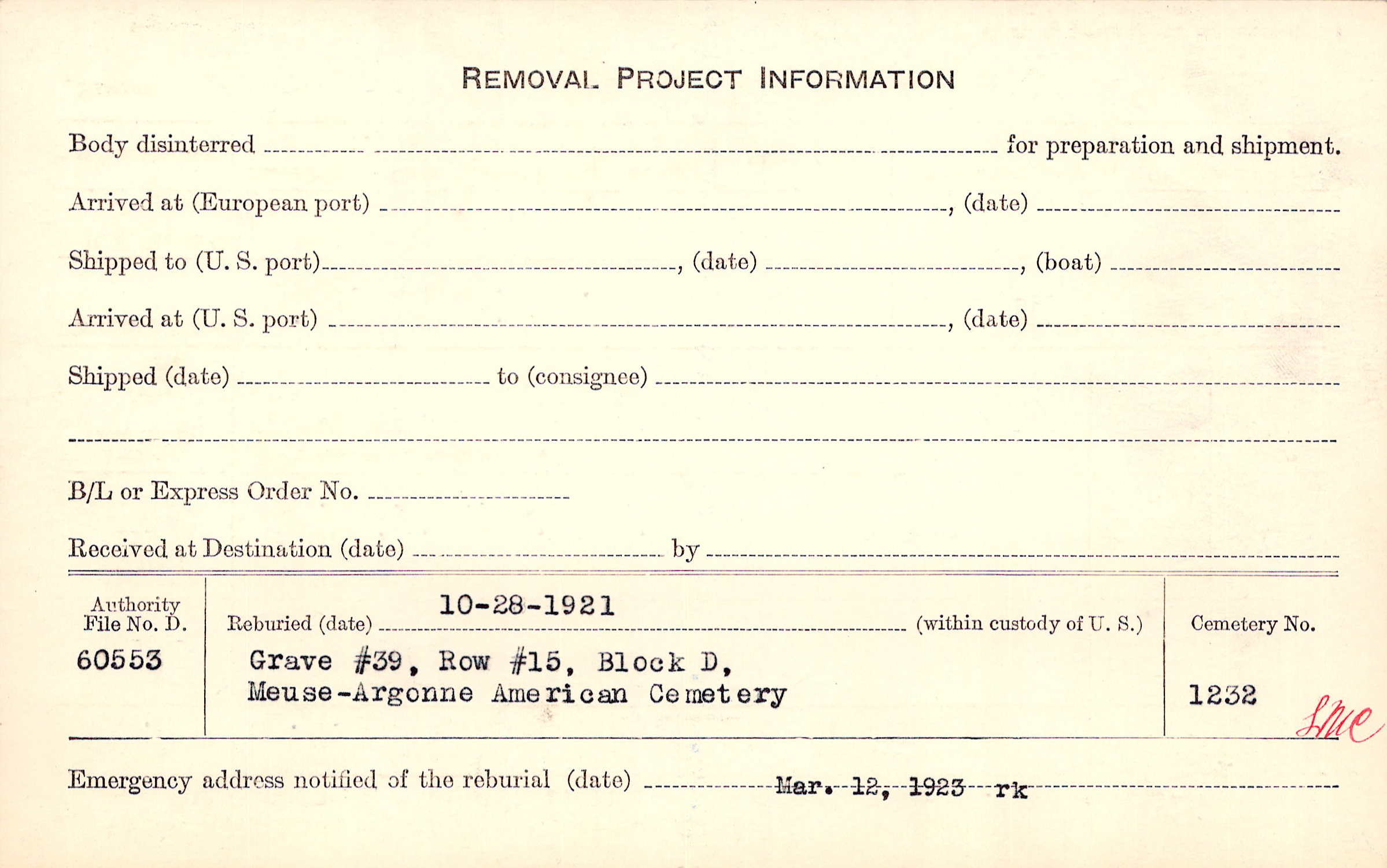 | Permanent Burial in Foreign Cemetery |