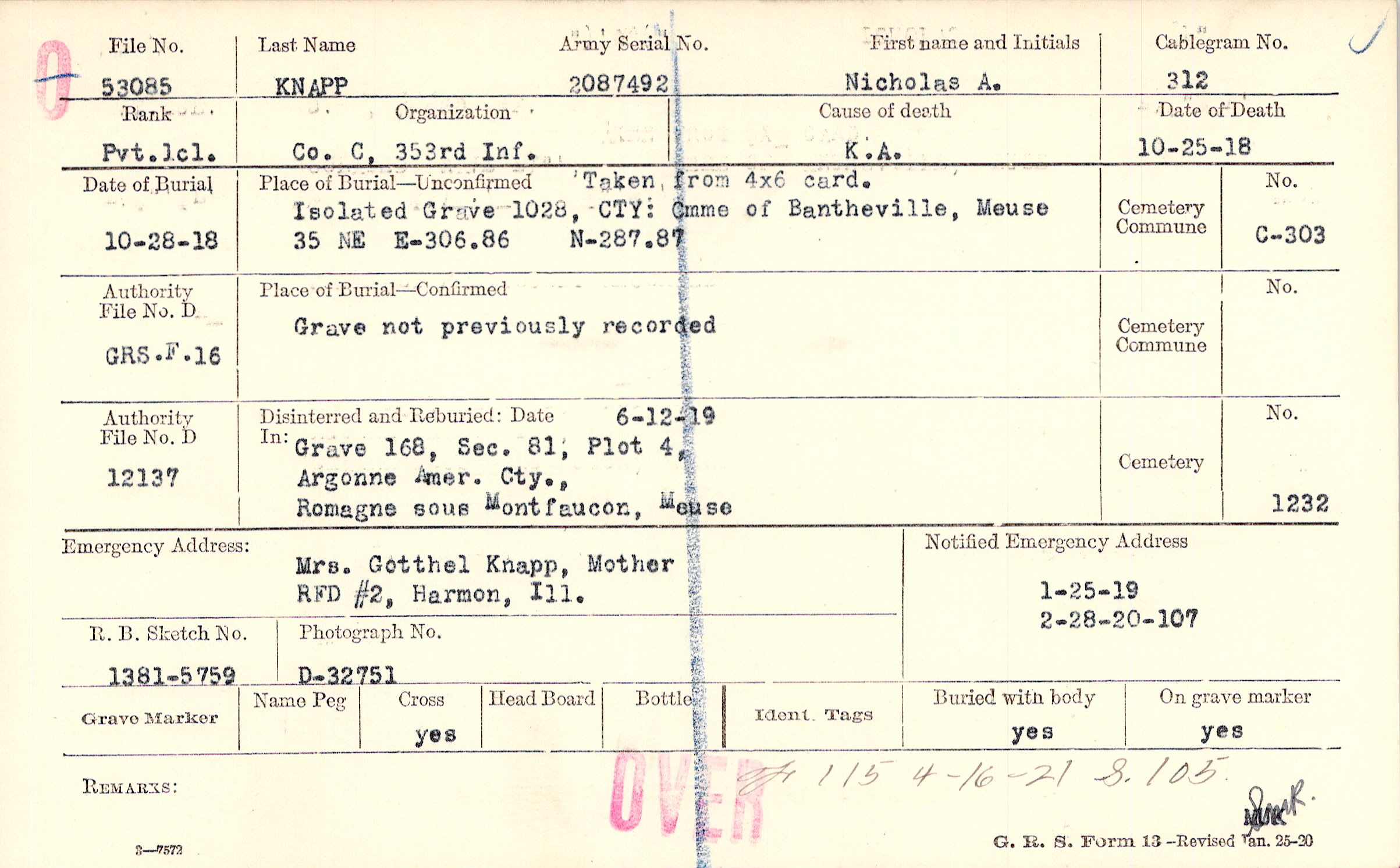 Isolated Grave 1028, ,CTY,Cmme. of Bantheville,,Meuse,35 NE