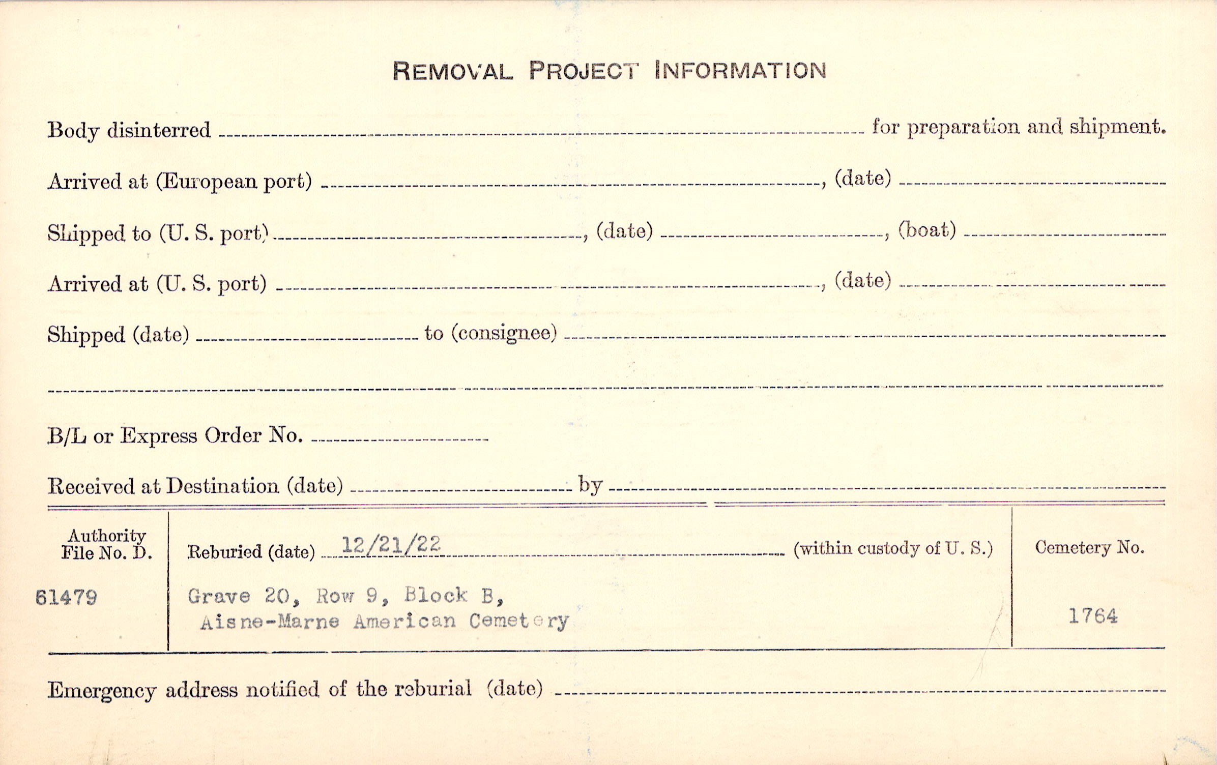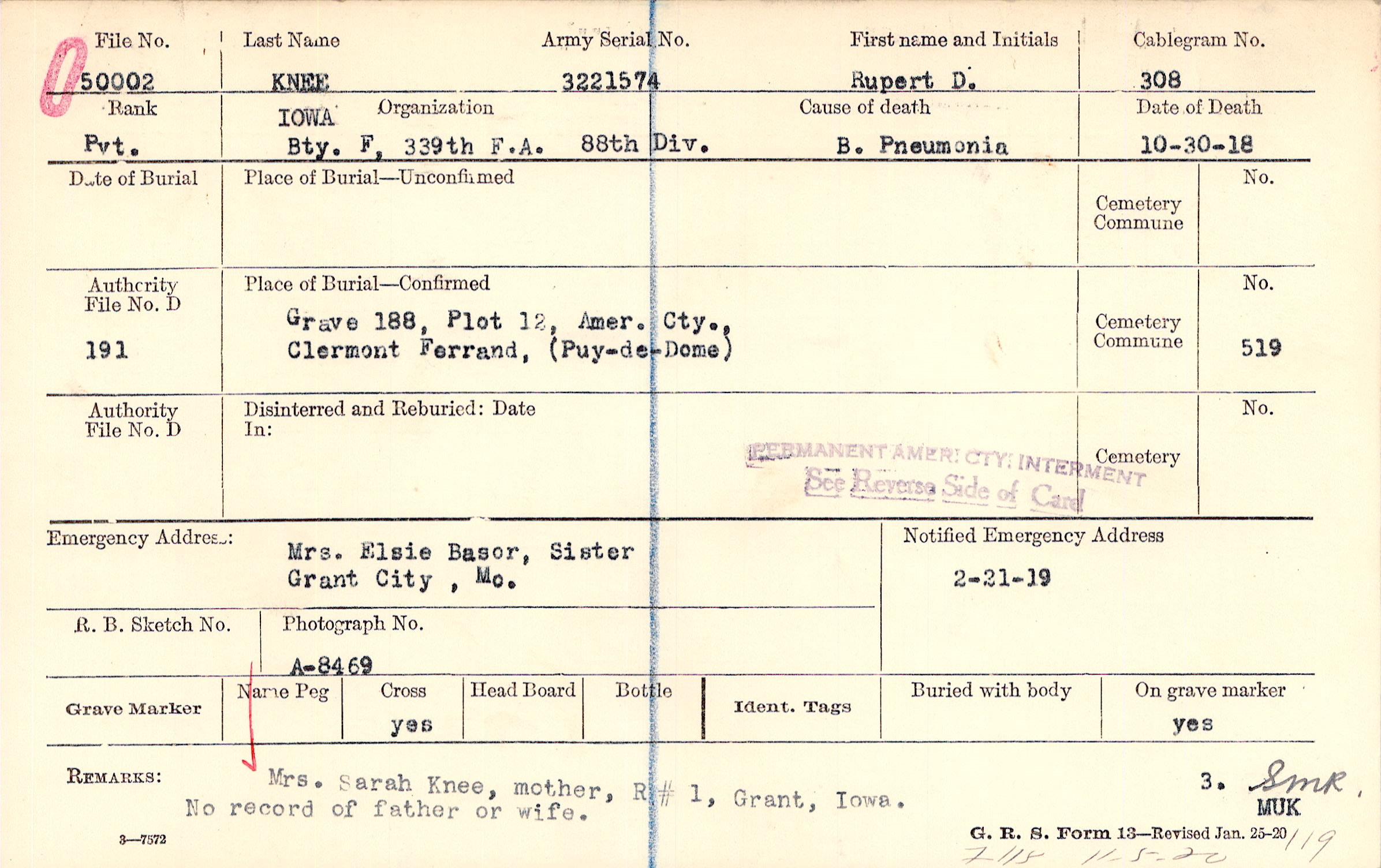 Grave 188, Plot 12, Amer. Cty., Clermont Ferrand, Puy-de-Dome