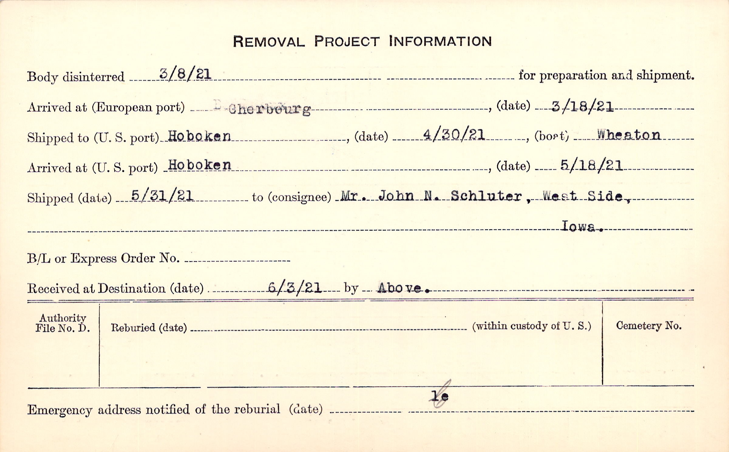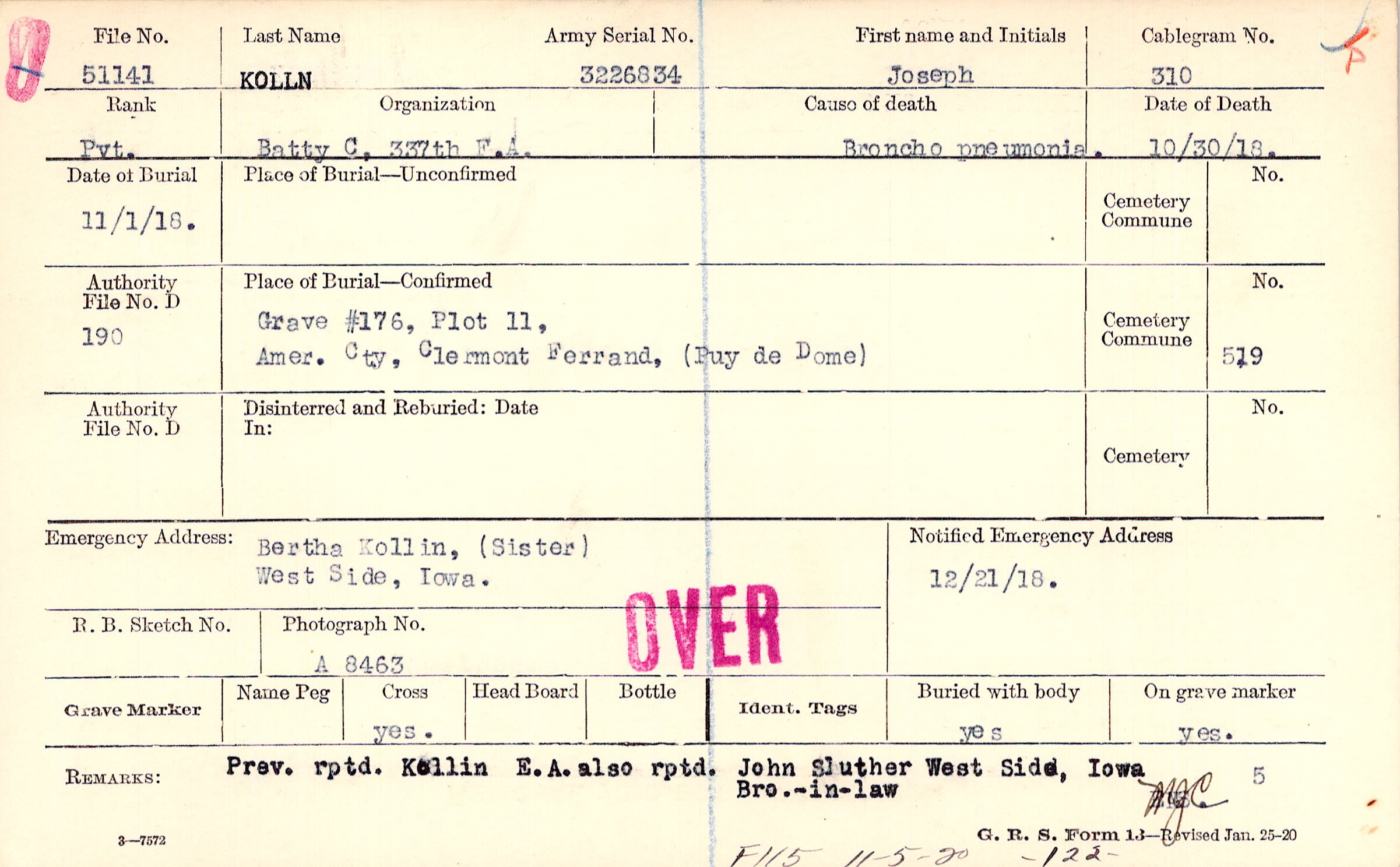 Prev. rptd. Kollin, E.A. also rptd. John Sluther, West Side, Iowa Bro.-in-law, F115 11-5-20 -122