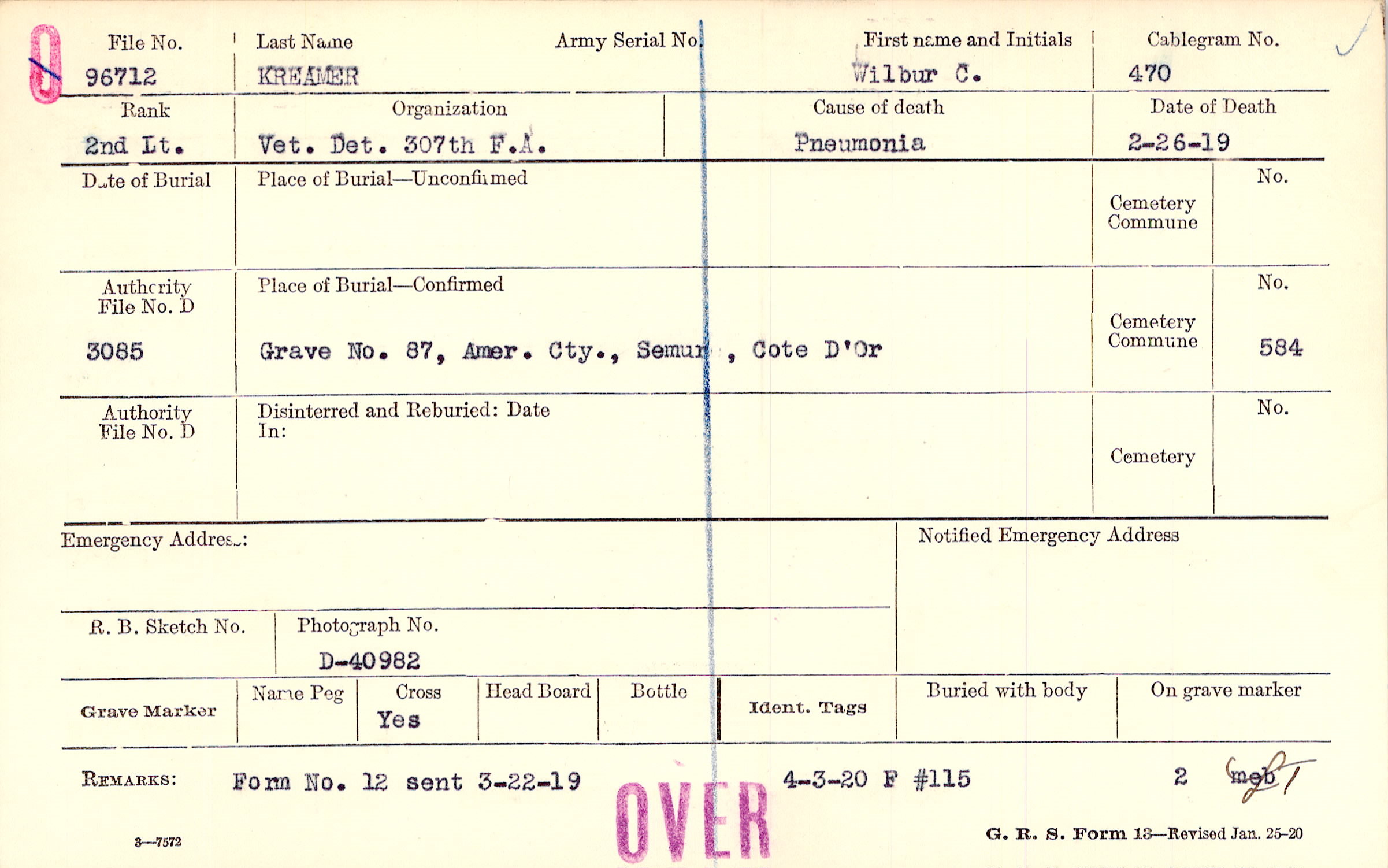 Grave 87, Amer. Cty., Semur, Cote D'Or