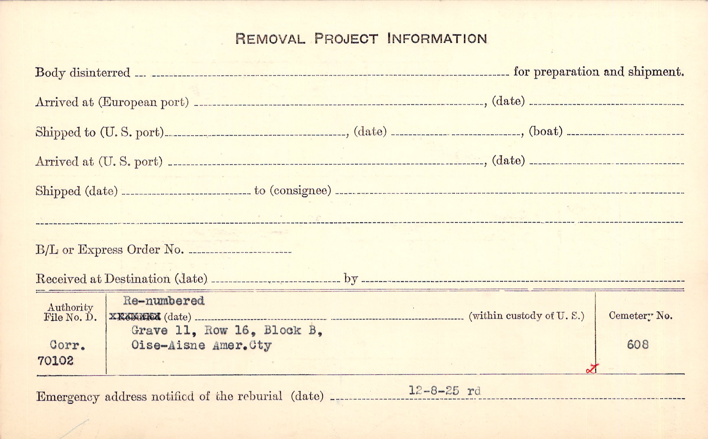 | Permanent Burial in Foreign Cemetery |