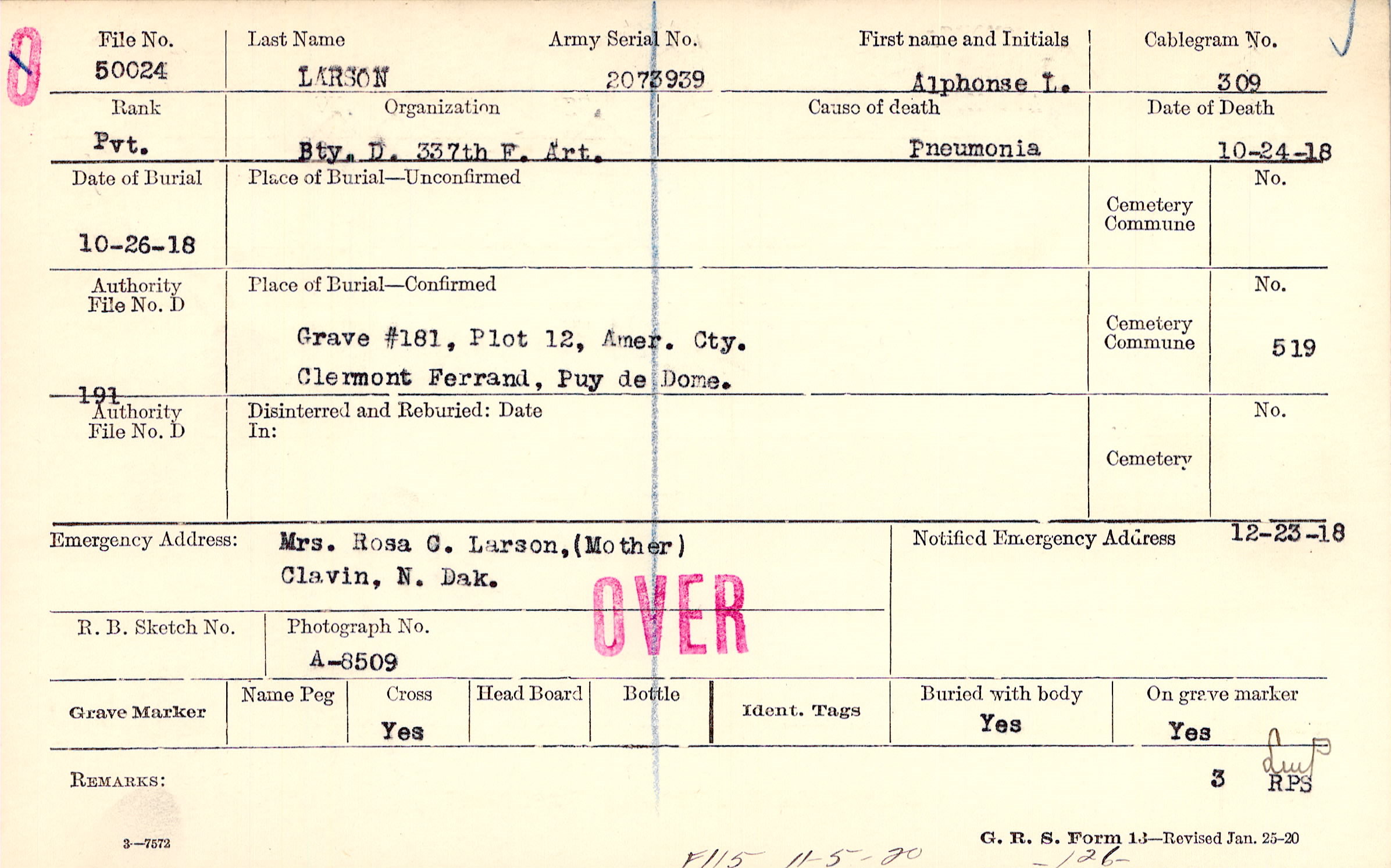 Mrs. Rosa C. Larson, (Mother), Clavin, N. Dak.