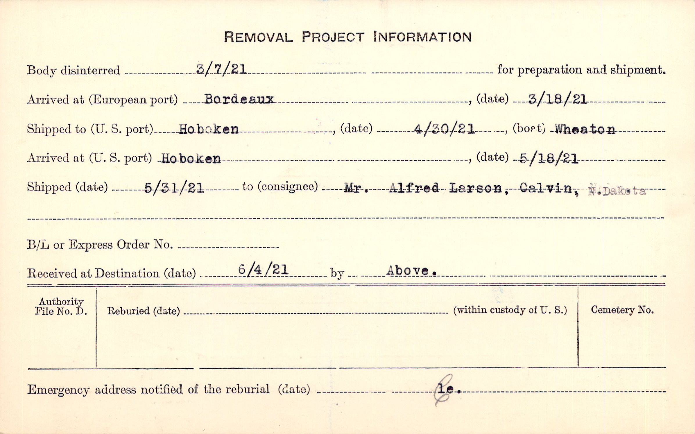 to Mr. Alfred Larson, Calvin, N.Dakota