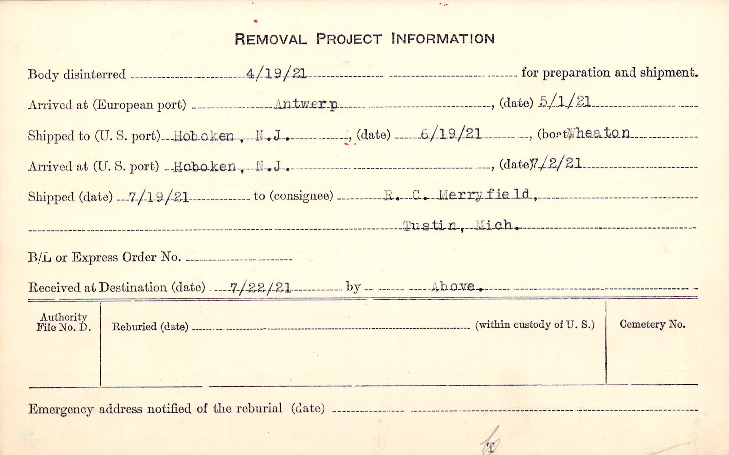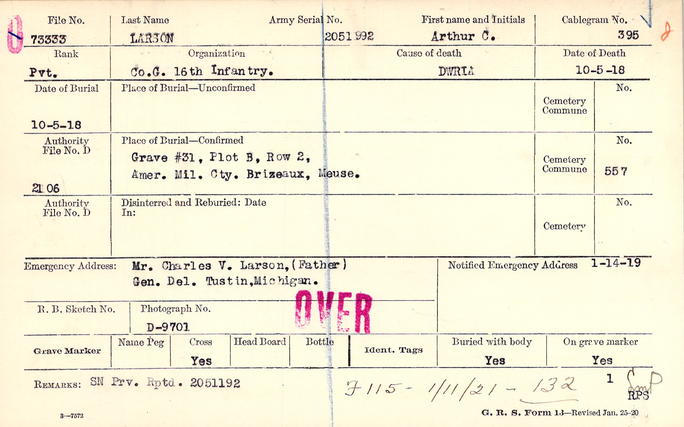 Mr. Charles V. Larson, (Father), Gen. Del. Tustin, Michigan., over