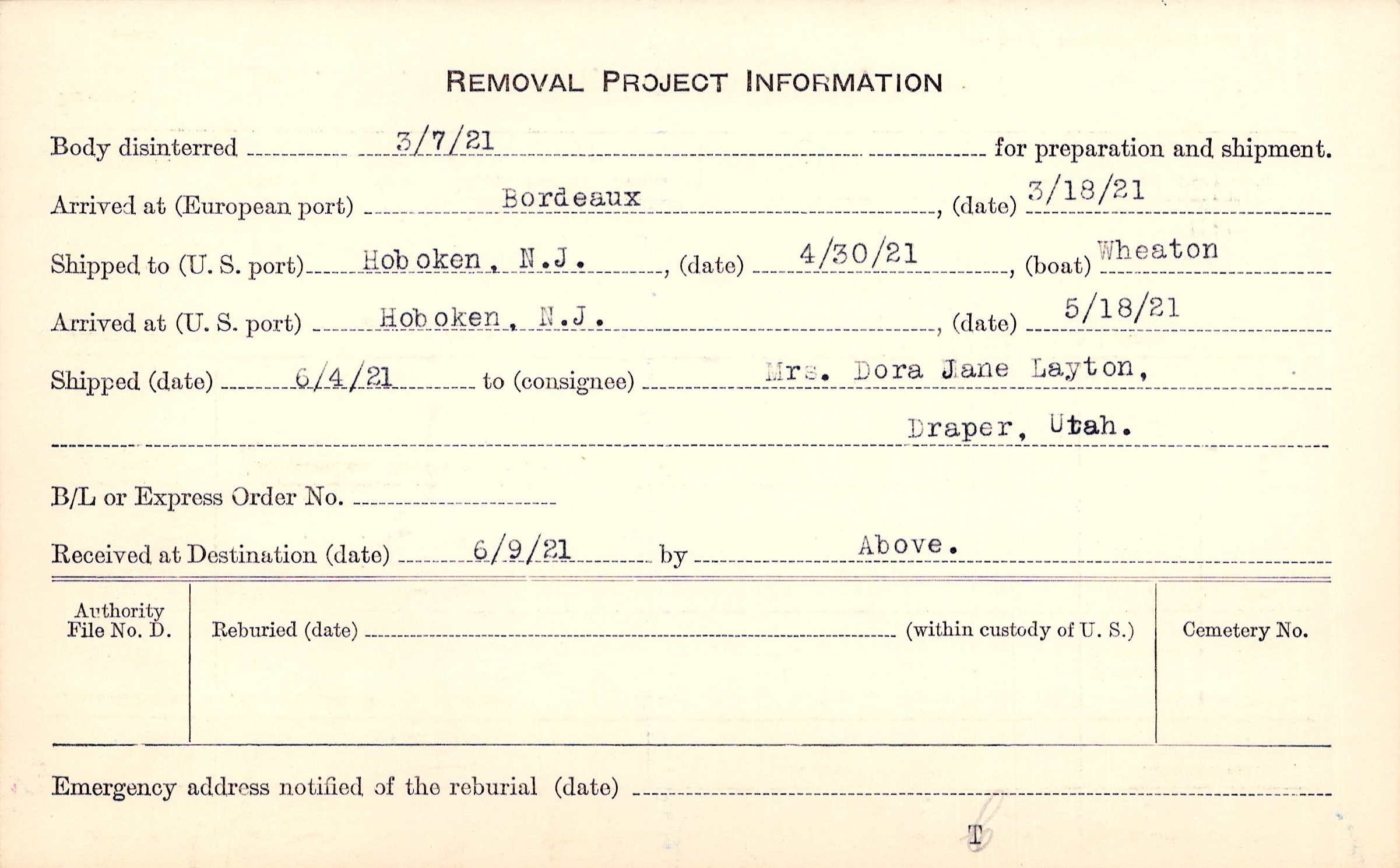 to Mrs. Dora Jane Layton, Draper, Utah.
