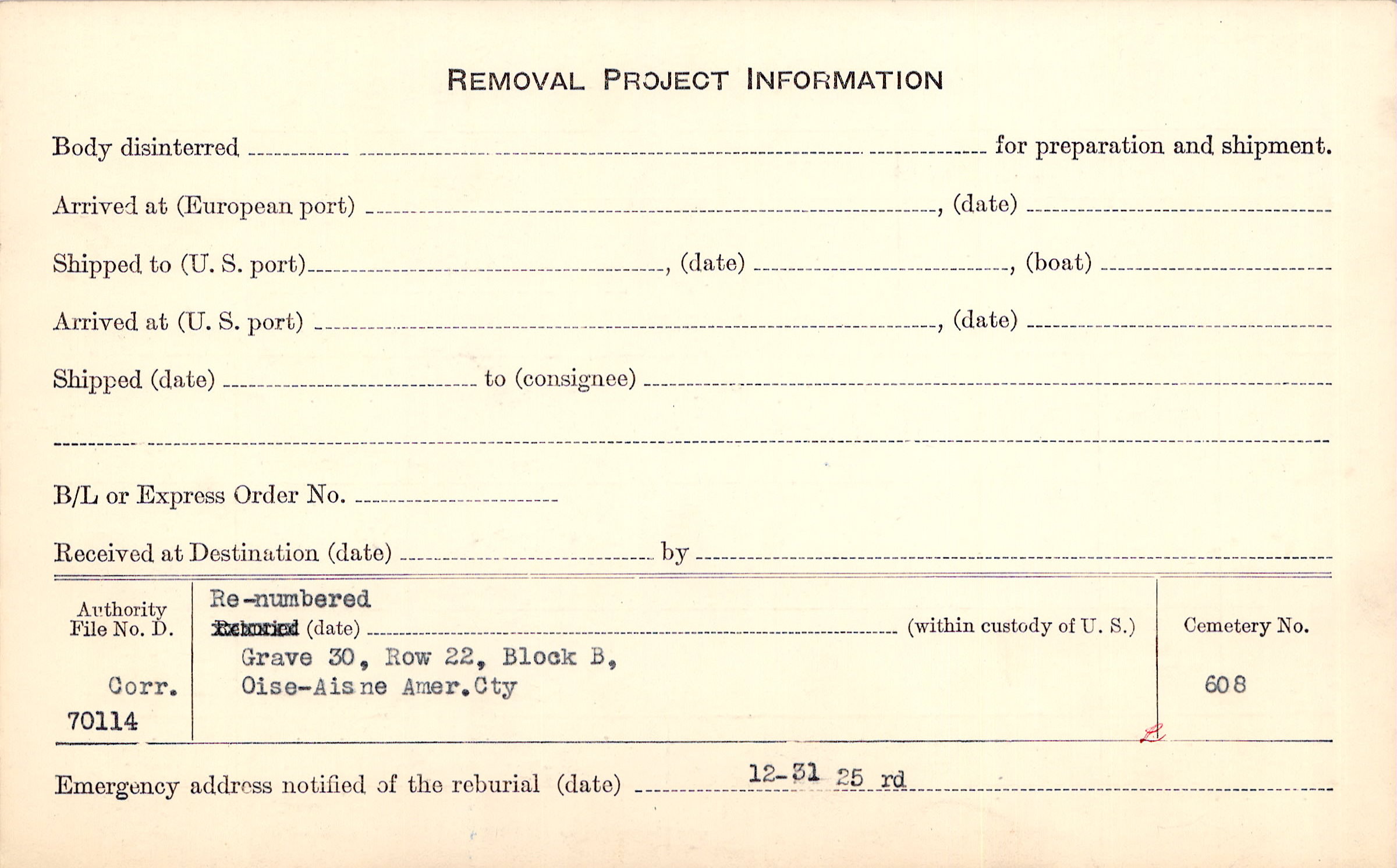 | Permanent Burial in Foreign Cemetery |