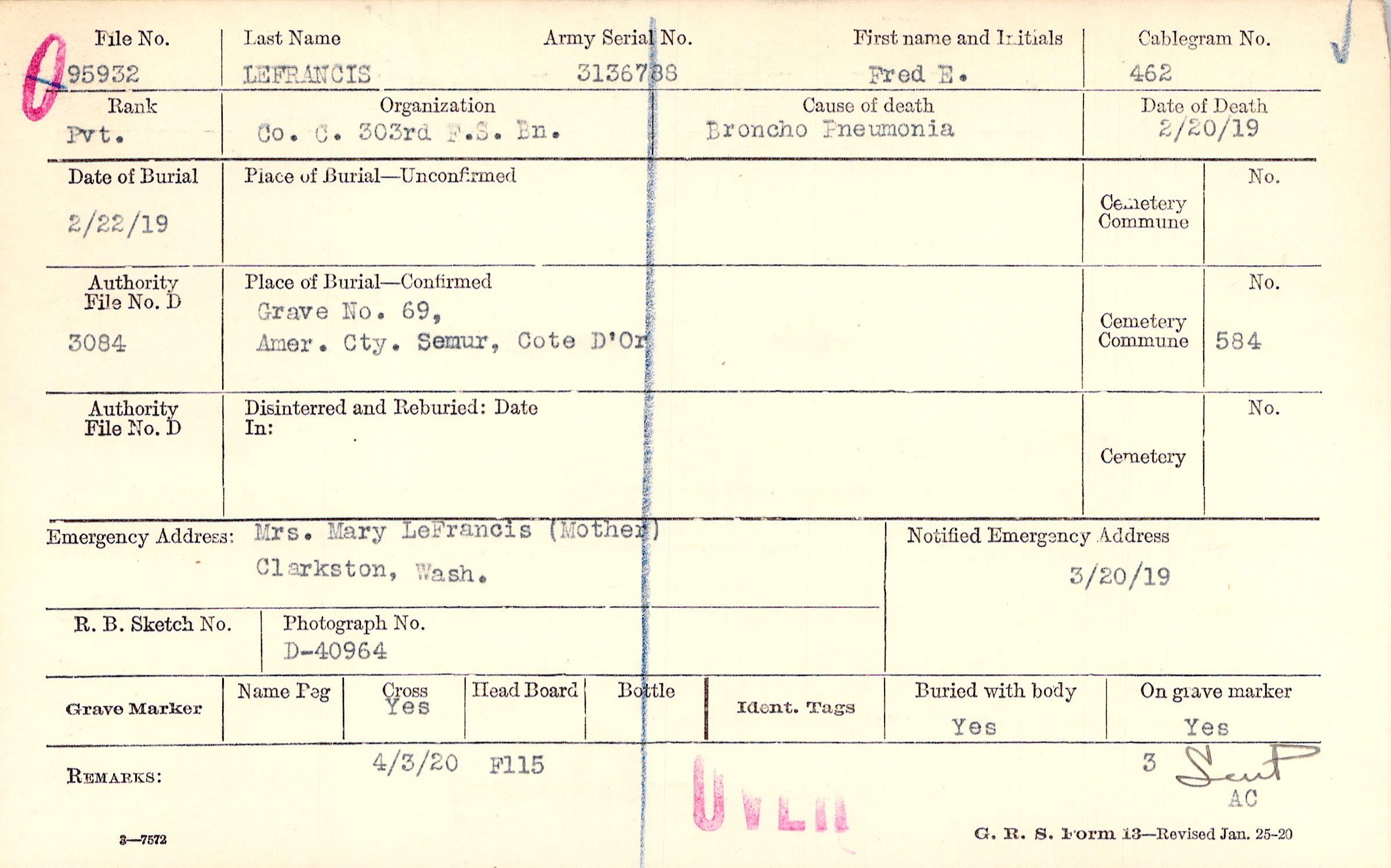 Mrs. Mary LeFrancis (Mother), Clarkston, Wash.