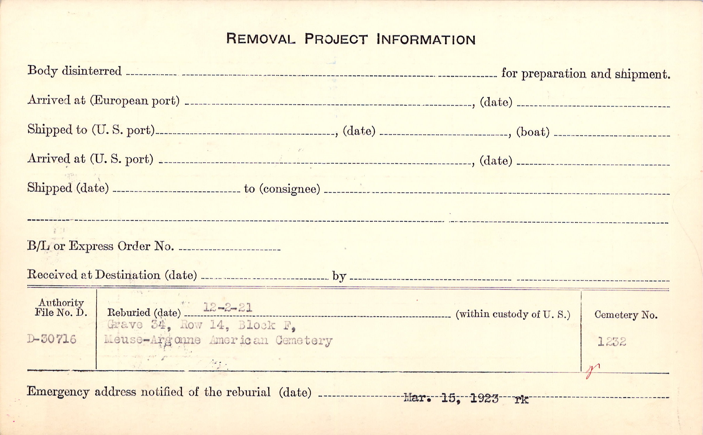 Grave #104, Sec. E, Plot 1, Amer. Cty., Les Islettes, Meuse.