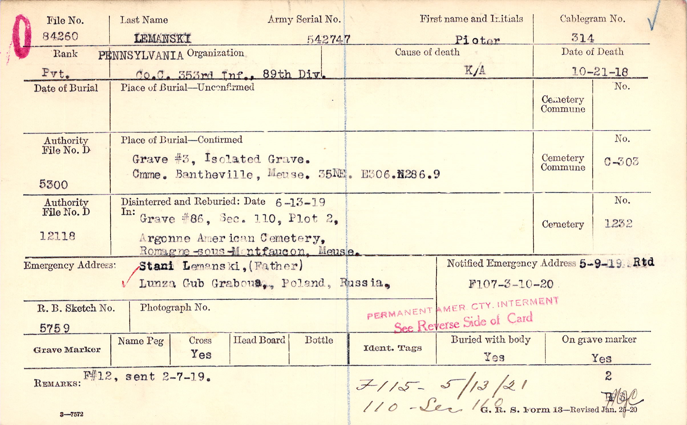 | Permanent Burial in Foreign Cemetery |