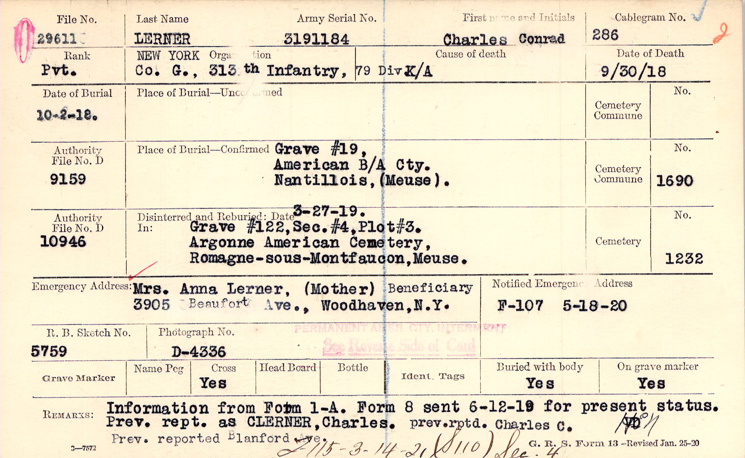 Information from Form 1-A. Form 8 sent 6-12-19 for present status. Prev. rept. as CLERNER, Charles. prev. rptd. Charles C. Prev reported Blanford Ave., Information from Form 1-A. Form 8 sent 6-12-19 for present status. Prev. rept. as CLERNER, Charles., F115 - 3-14-21 (S110) Sec. 4