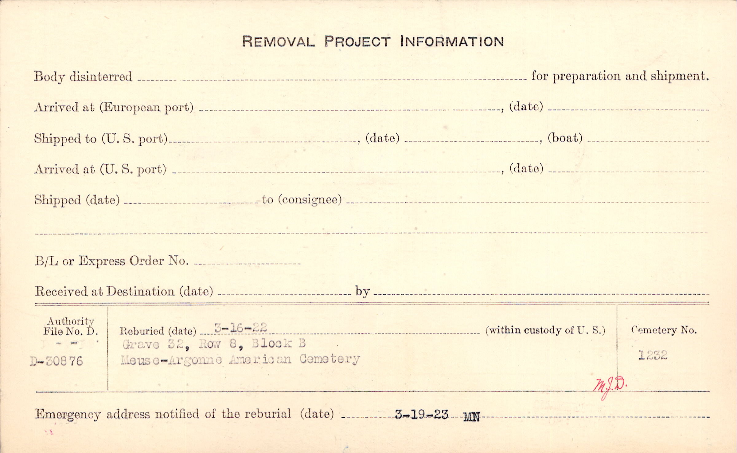 | Permanent Burial in Foreign Cemetery |