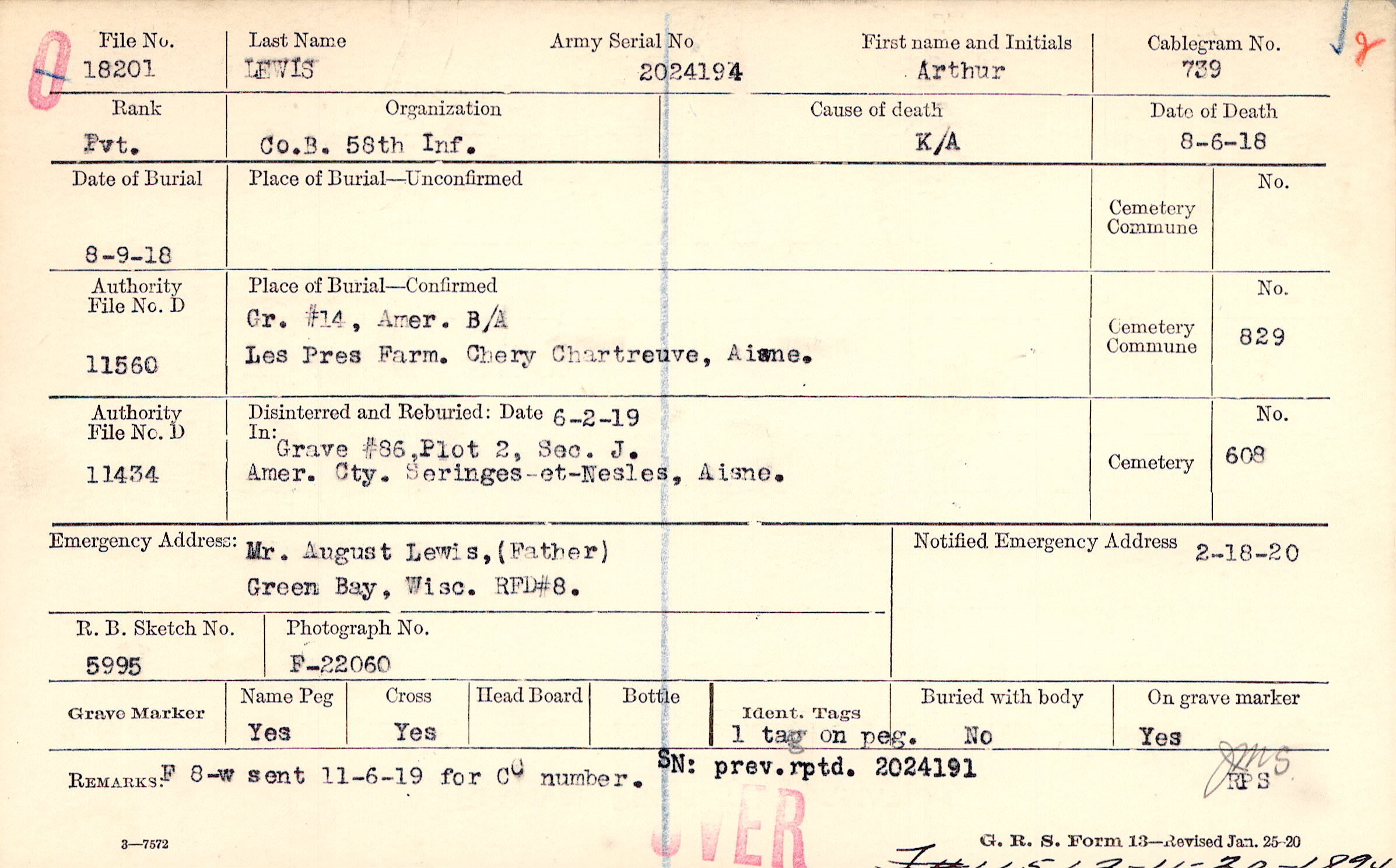 Mr. August Lewis, (Father), Green Bay, Wisc. RFD#8.