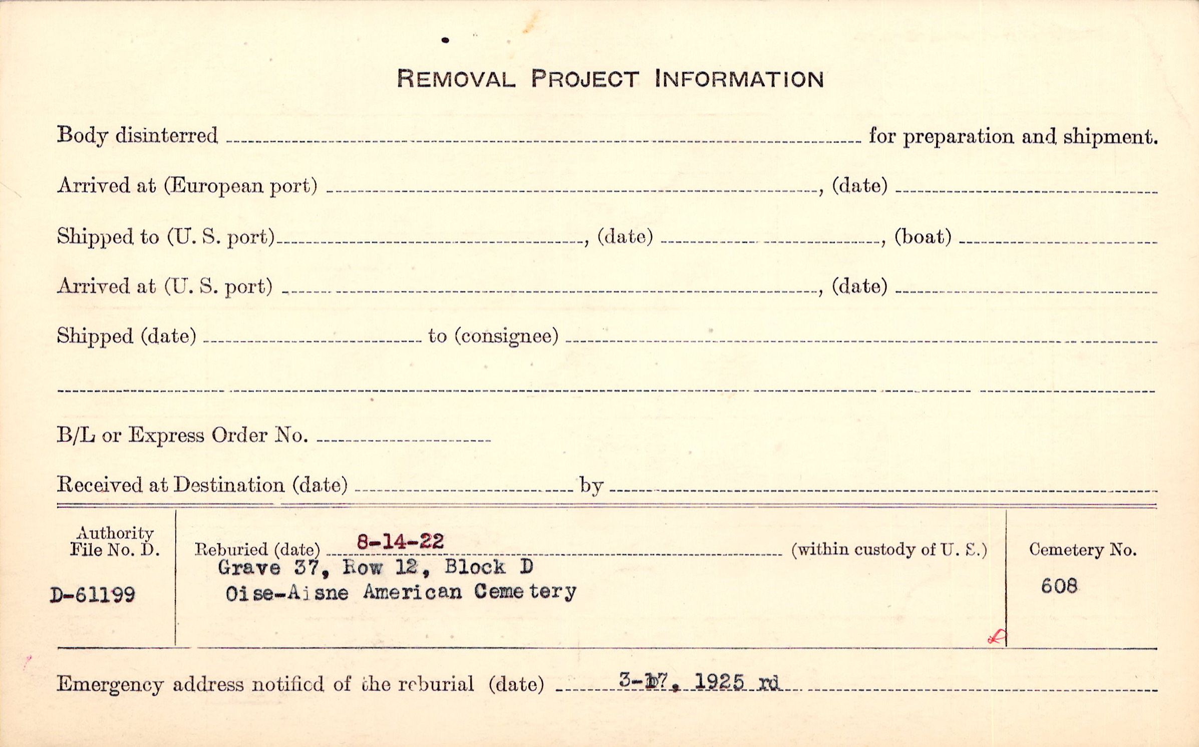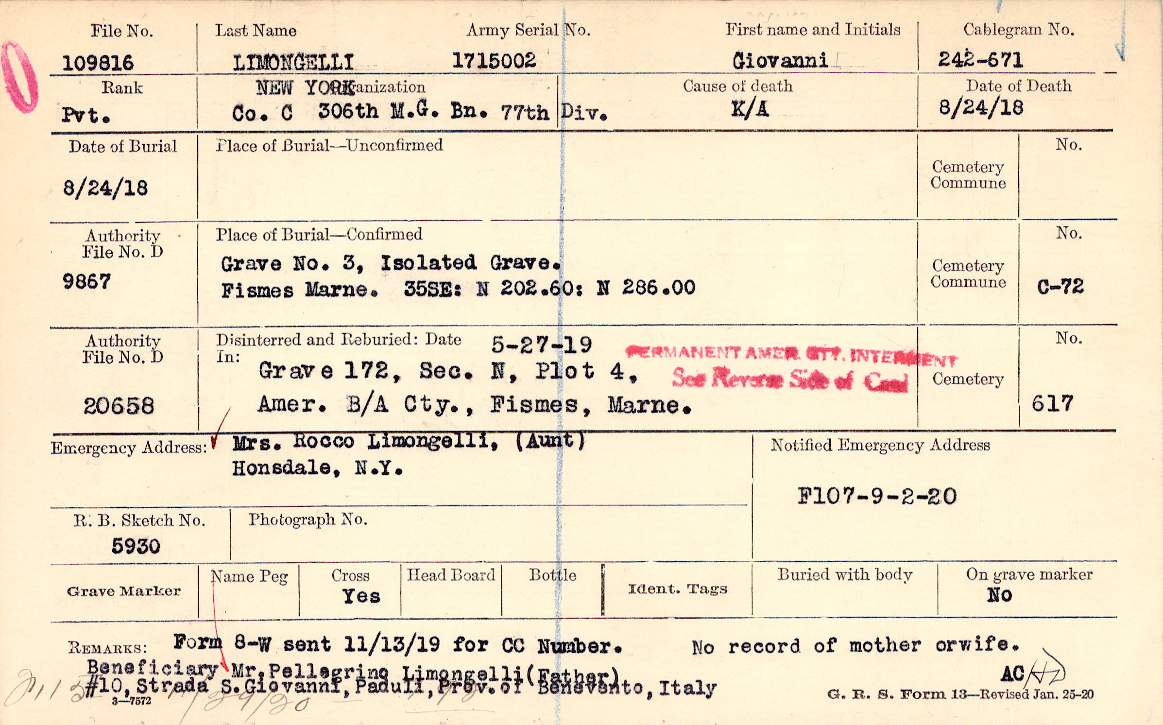 Grave 172, Section N, Plot 4, American B/A Cemetery, Fismes, Marne
