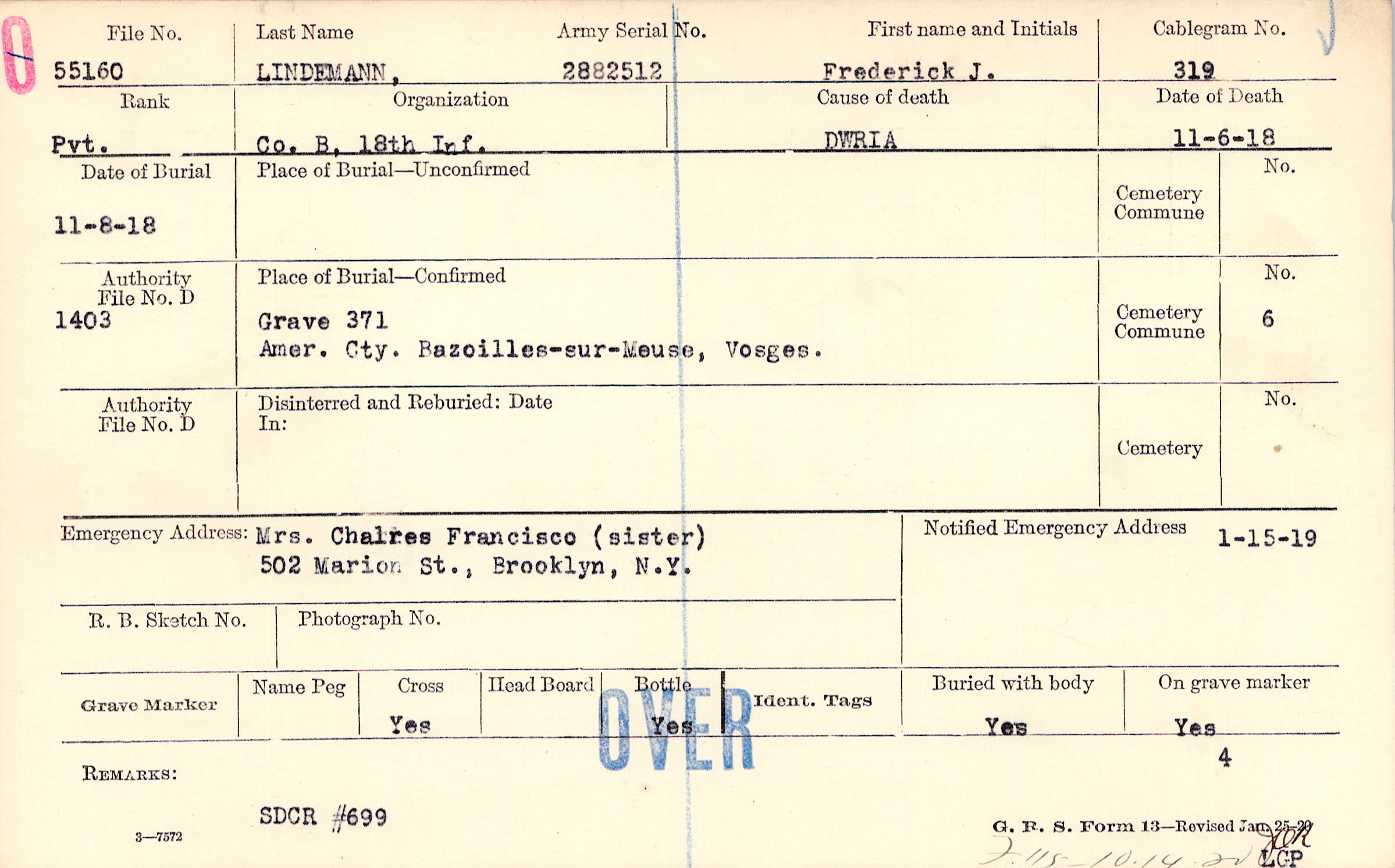 Grave 371, Amer. Cty., Bazoilles-sur-Meuse, Vosges