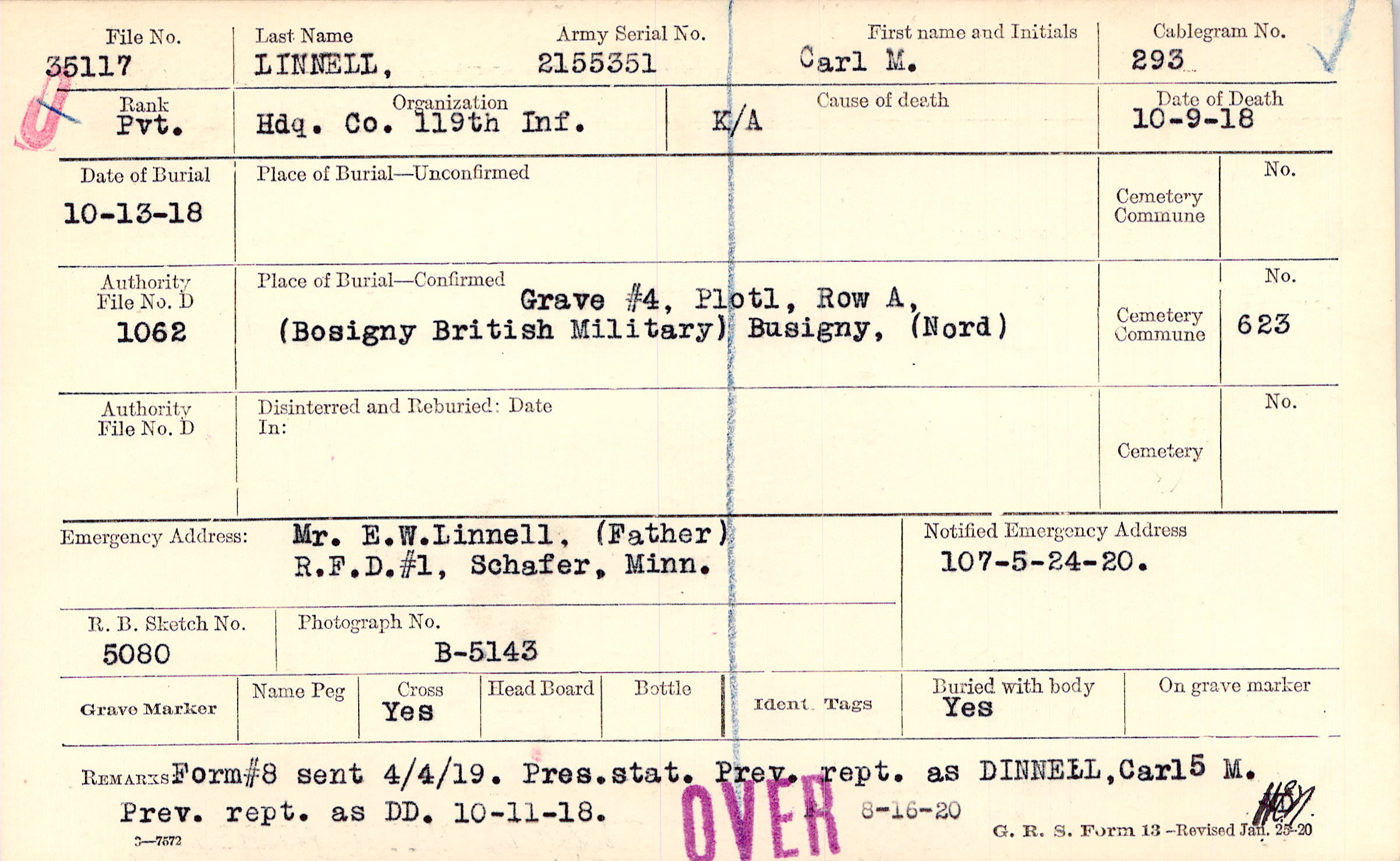 Mr. E. W. Linnell, (Father), R.F.D. #1, Schafer, Minn.