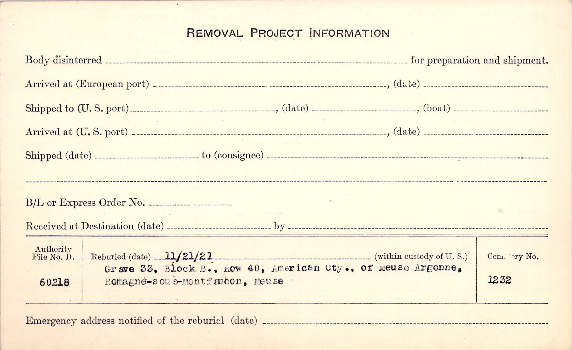 | Permanent Burial in Foreign Cemetery |