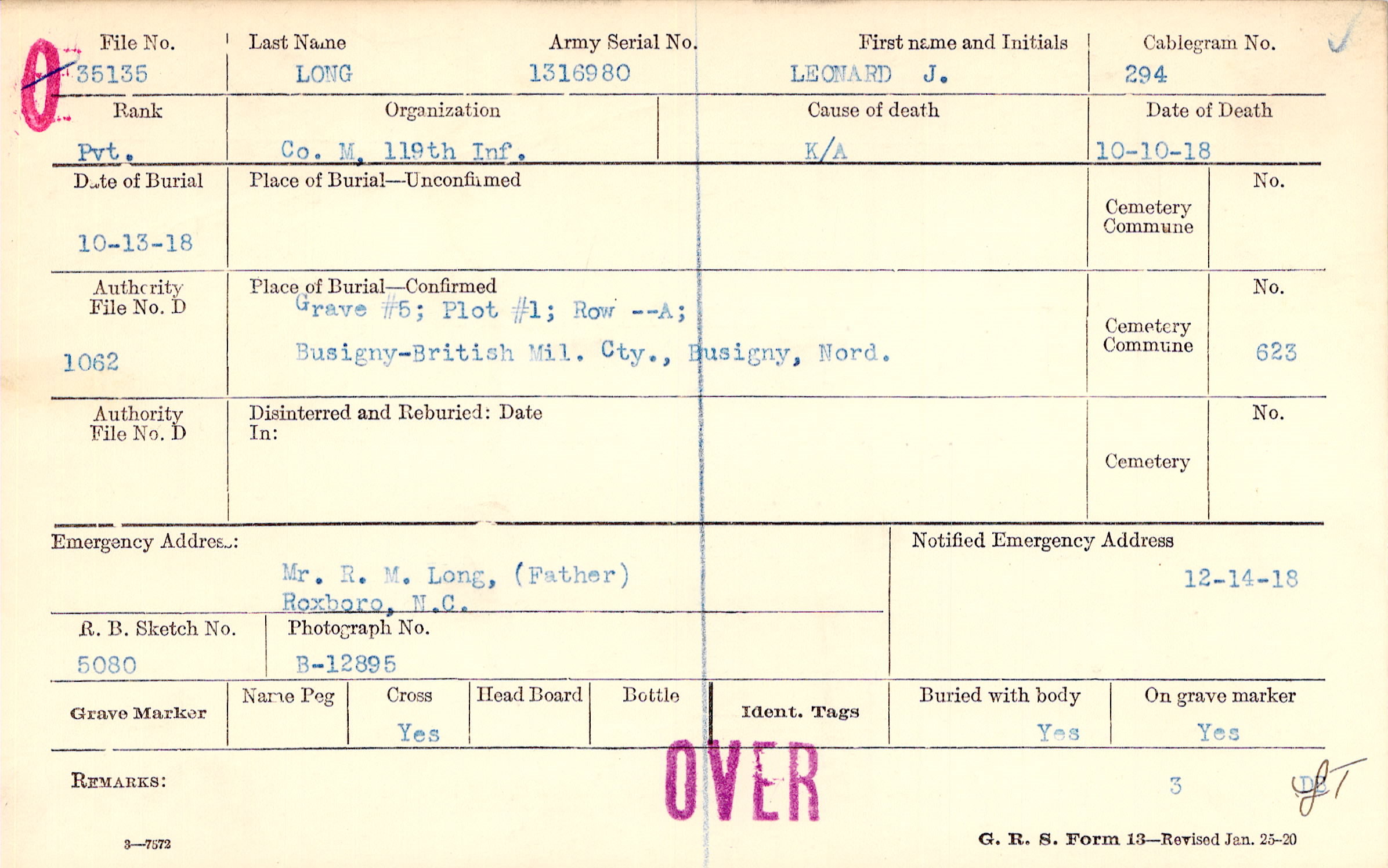 Grave #5;, Plot #1;, Row --A;, Busigny-British Mil. Cty., Busigny, Nord.