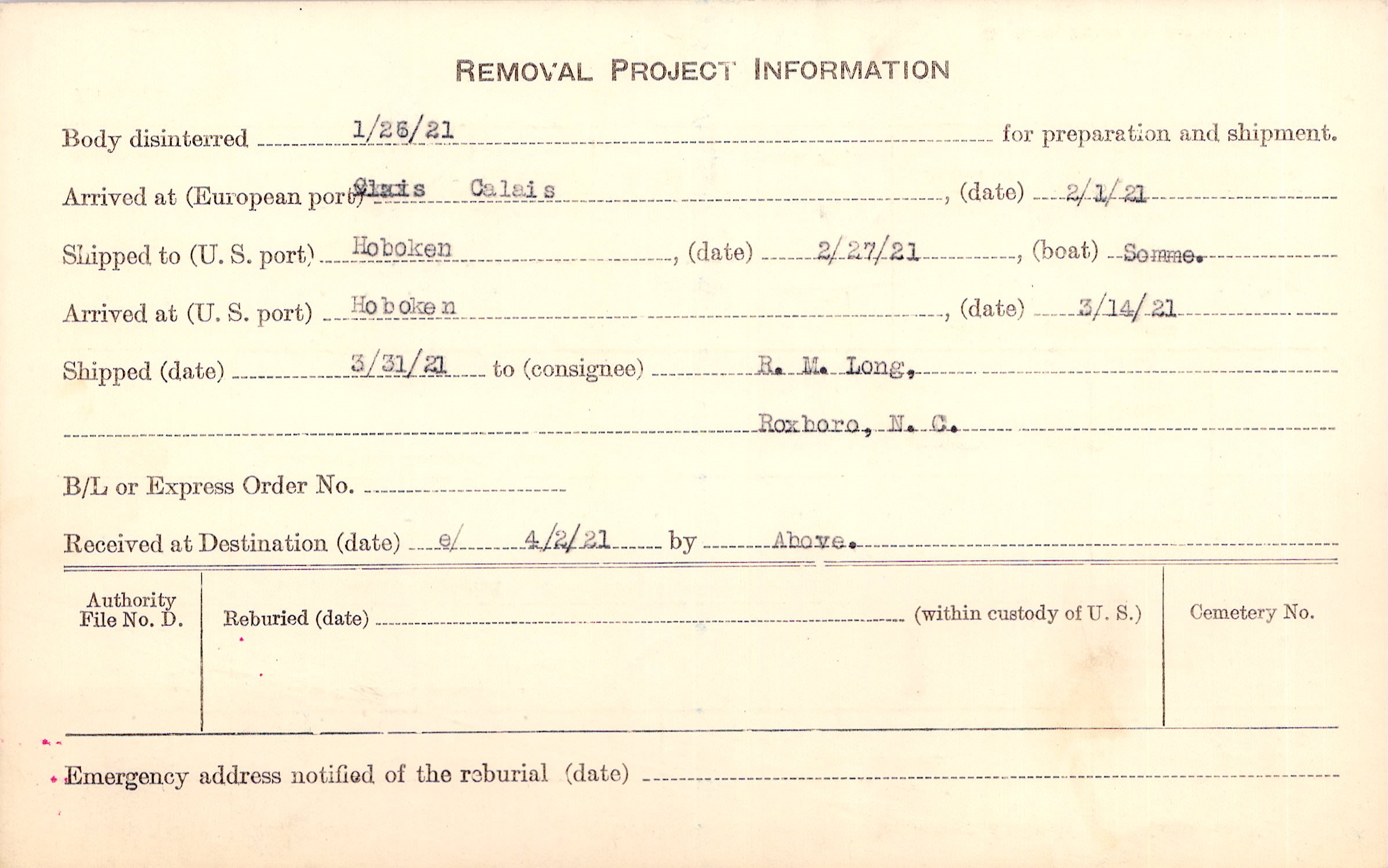 Mr. R. M. Long, (Father), Roxboro, N.C.