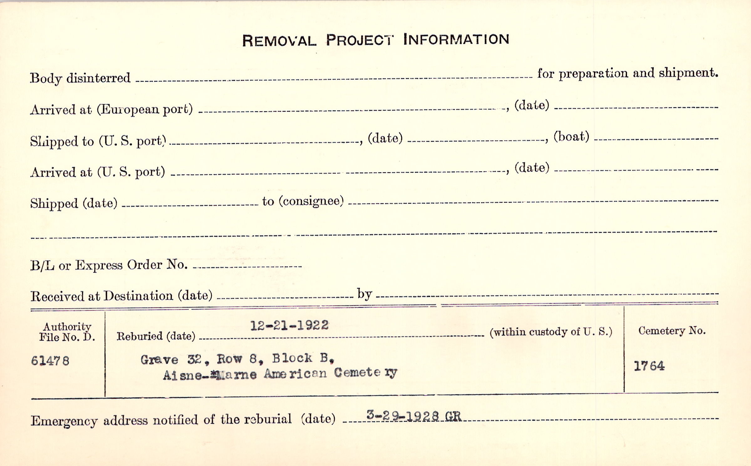| Permanent Burial in Foreign Cemetery |