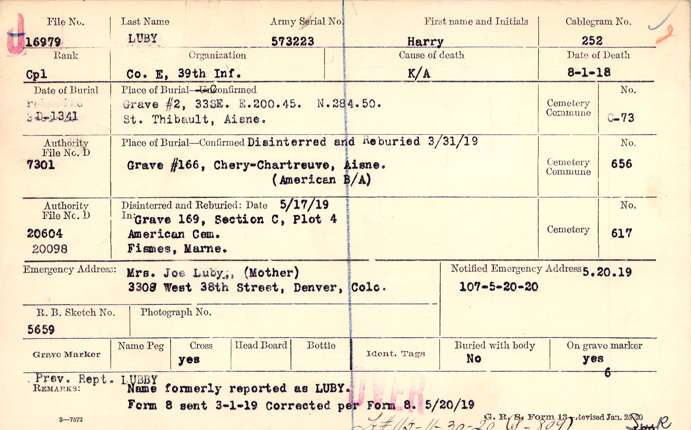Prev. Rept. LUBBY Name formerly reported as LUBY., Name formerly reported as LUBY. Form 8 sent 3-1-19 Corrected per Form 8. 5/20/19, F#115-11-30-20 (S-809)
