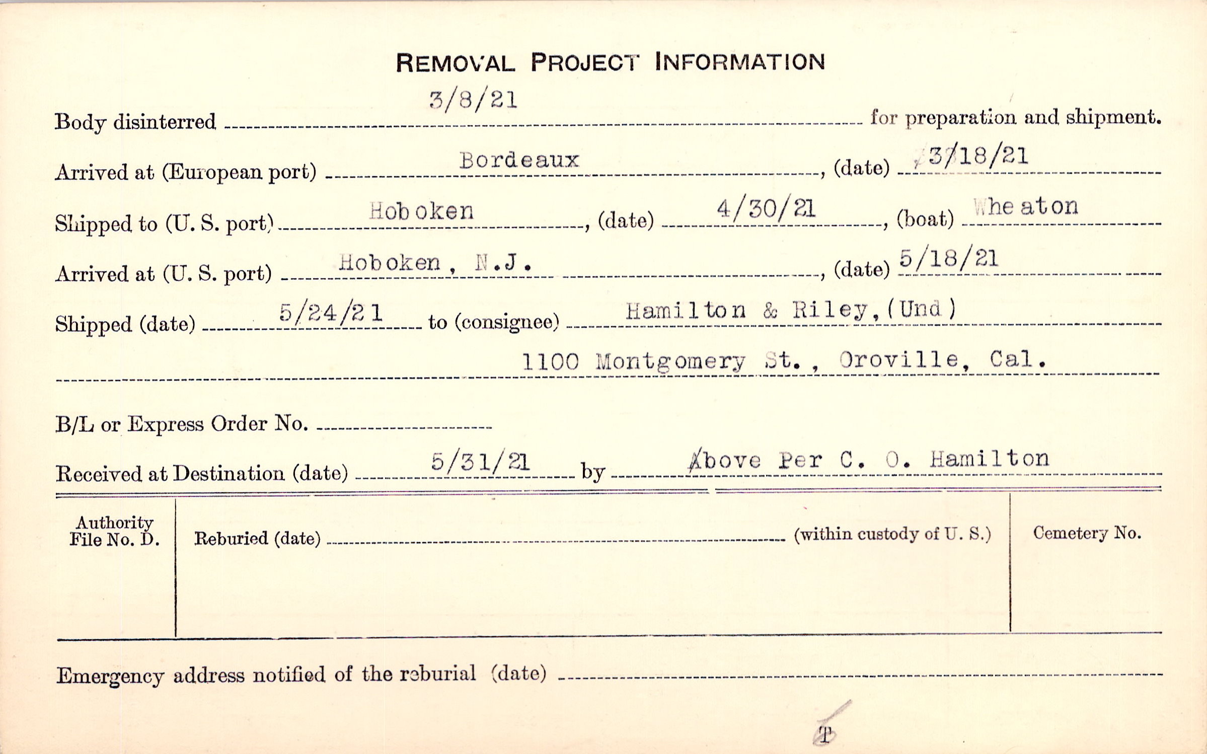 to Hamilton & Riley , (Und), 1100 Montgomery St. , Oroville, Cal.