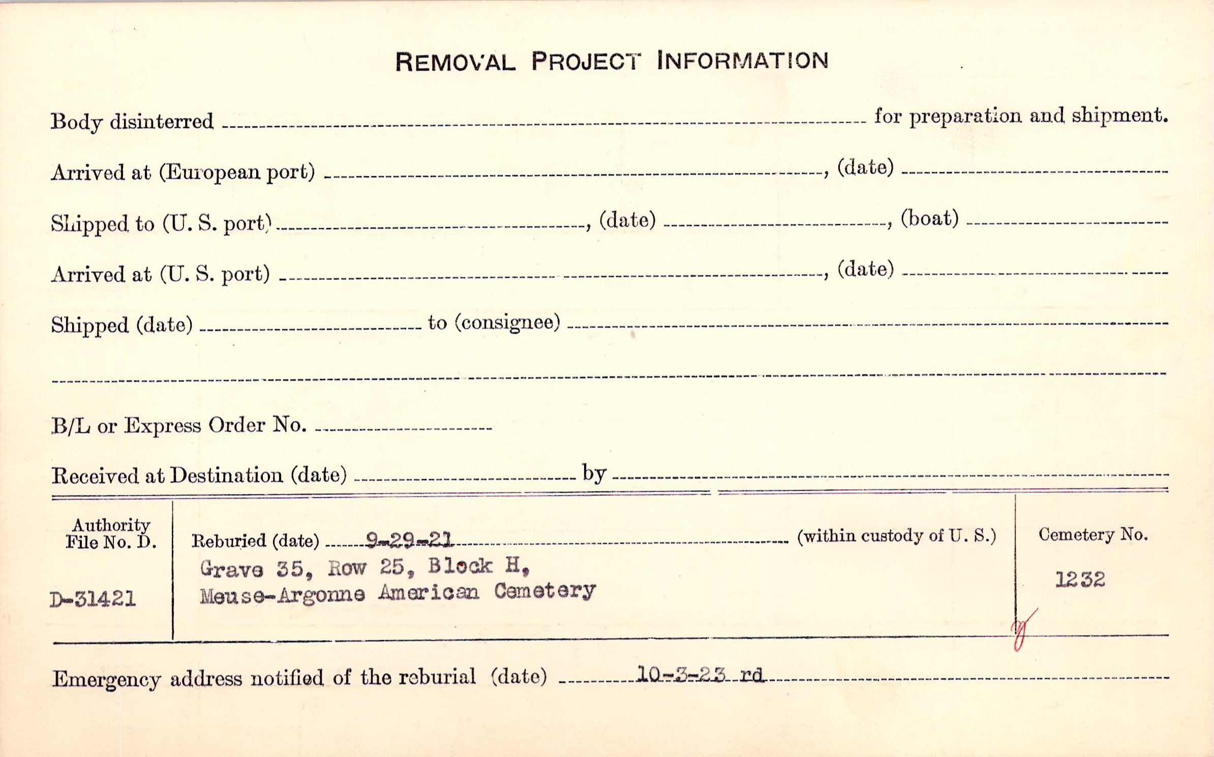 Grave 66, Section 93, Plot 2, Argonne American Cemetery, Romagne-sous-Montfaucon, Meuse
