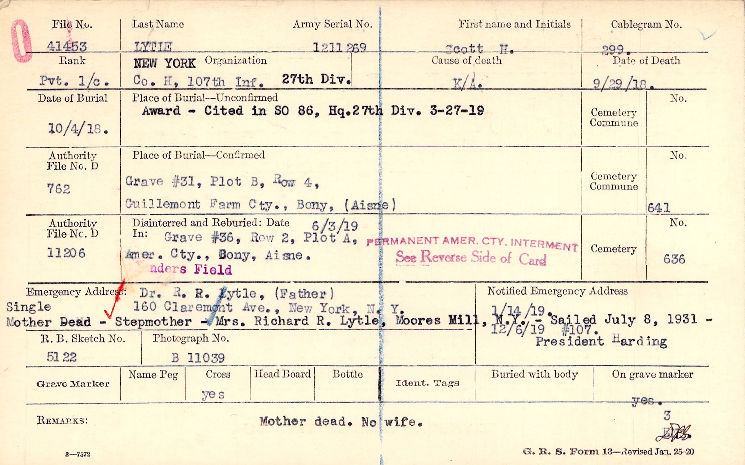 Dr. R. R. Lytle, (Father), 160 Claremont Ave., New York, N. Y., Single Mother Dead - Stepmother - Mrs. Richard R. Lytle, Moores Mill, N.Y. - Sailed July 8, 1931 - President Harding