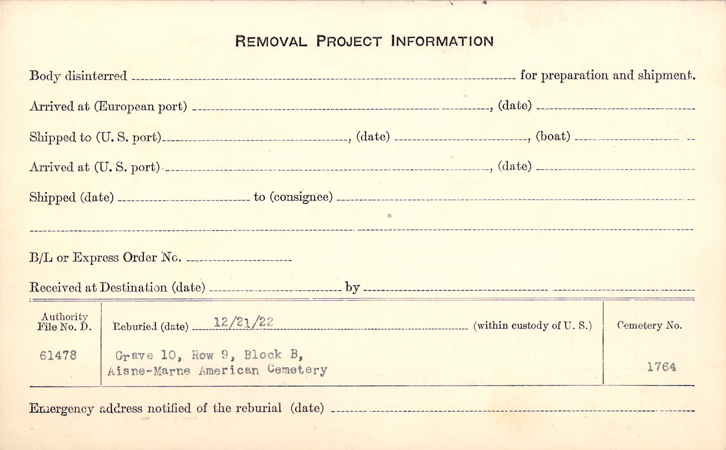| Permanent Burial in Foreign Cemetery |