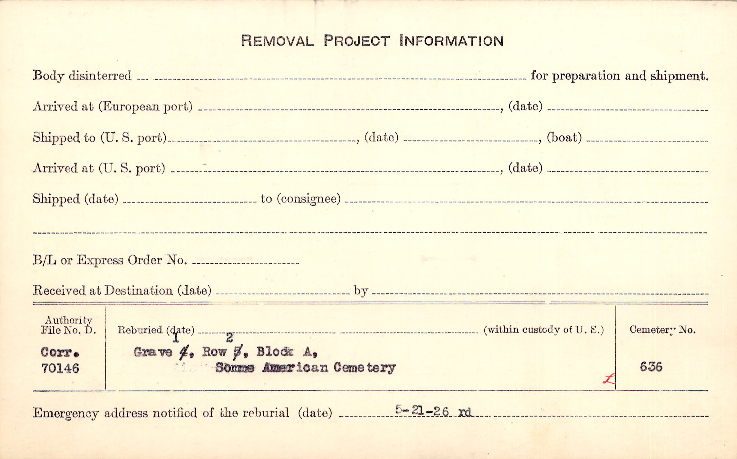 | Permanent Burial in Foreign Cemetery |