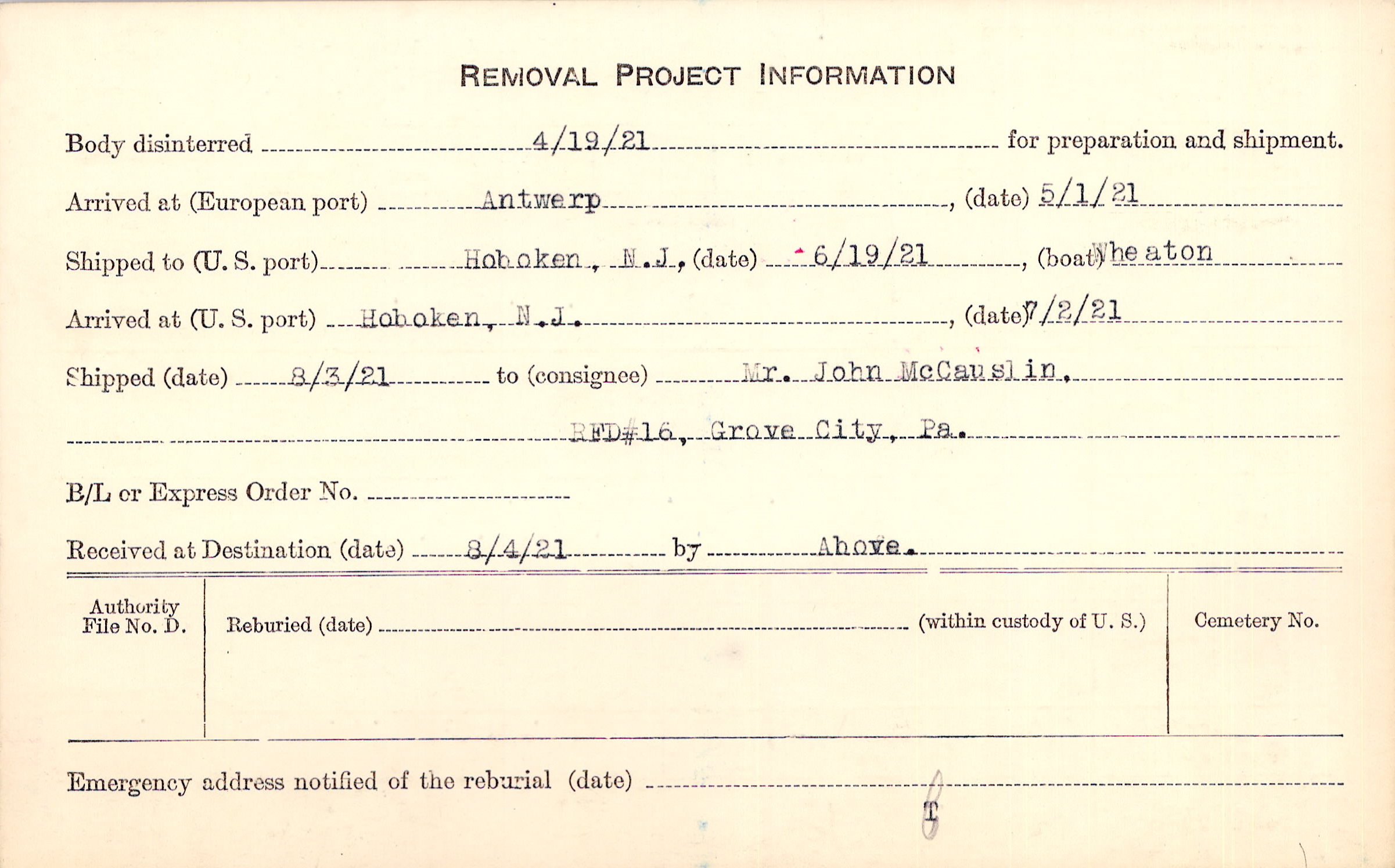 John McCauslin (Father), RFD #3, Mercer, Pa.