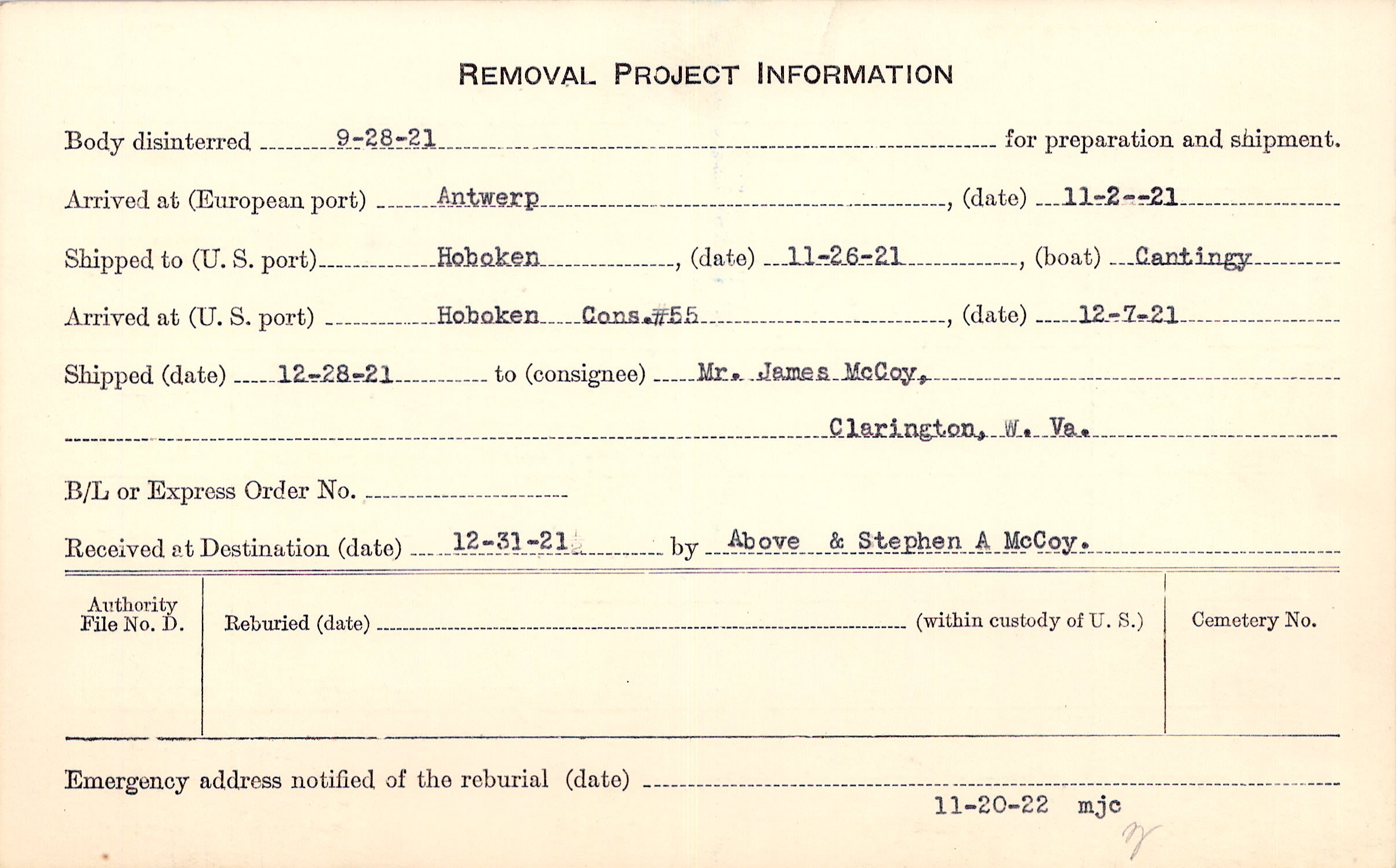 Clara McCoy, (Sister), RR #2 Clarington, Ohio.