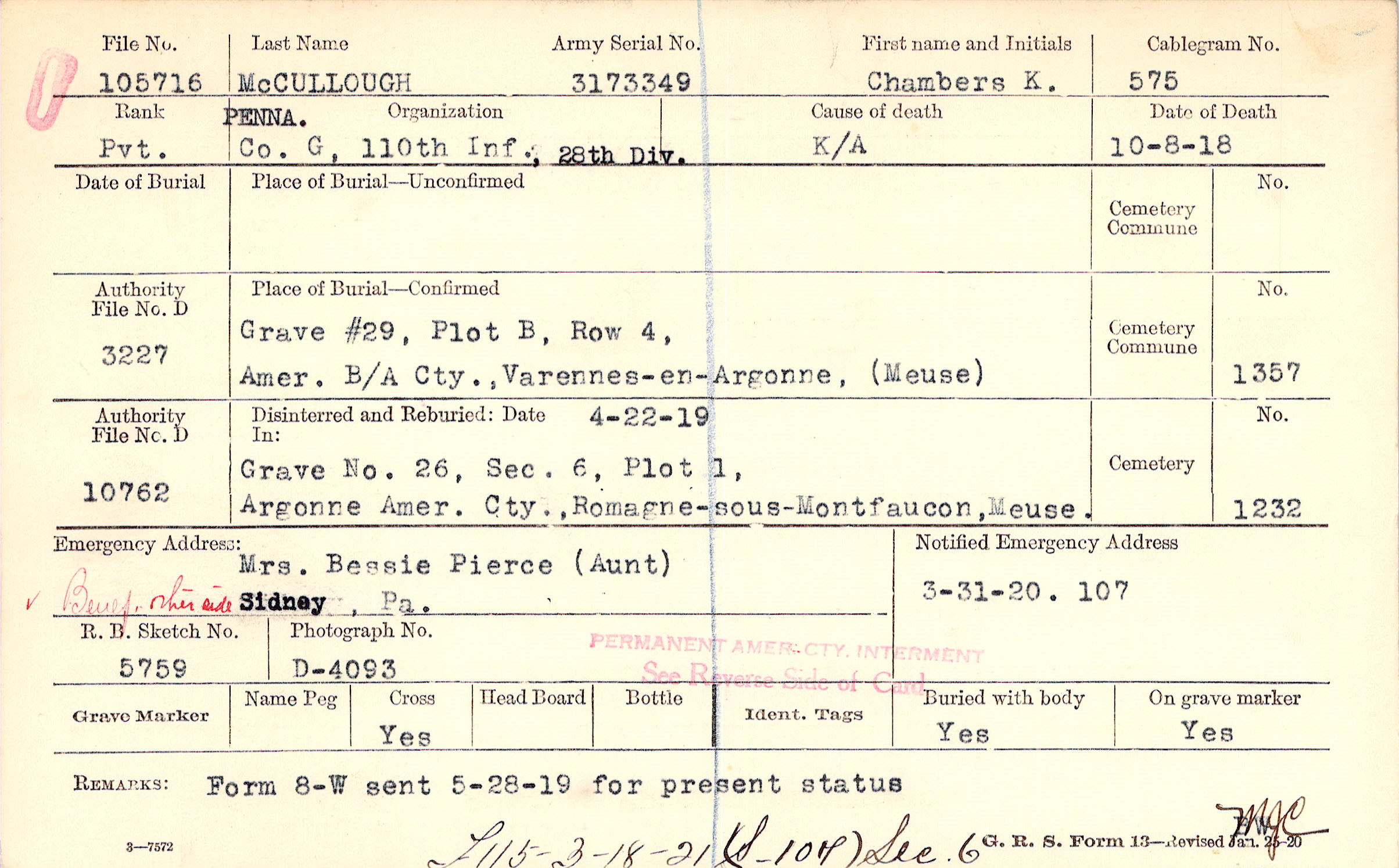 Grave #29, Plot B, Row 4, Amer. B/A Cty., Varennes-en-Argonne, Meuse