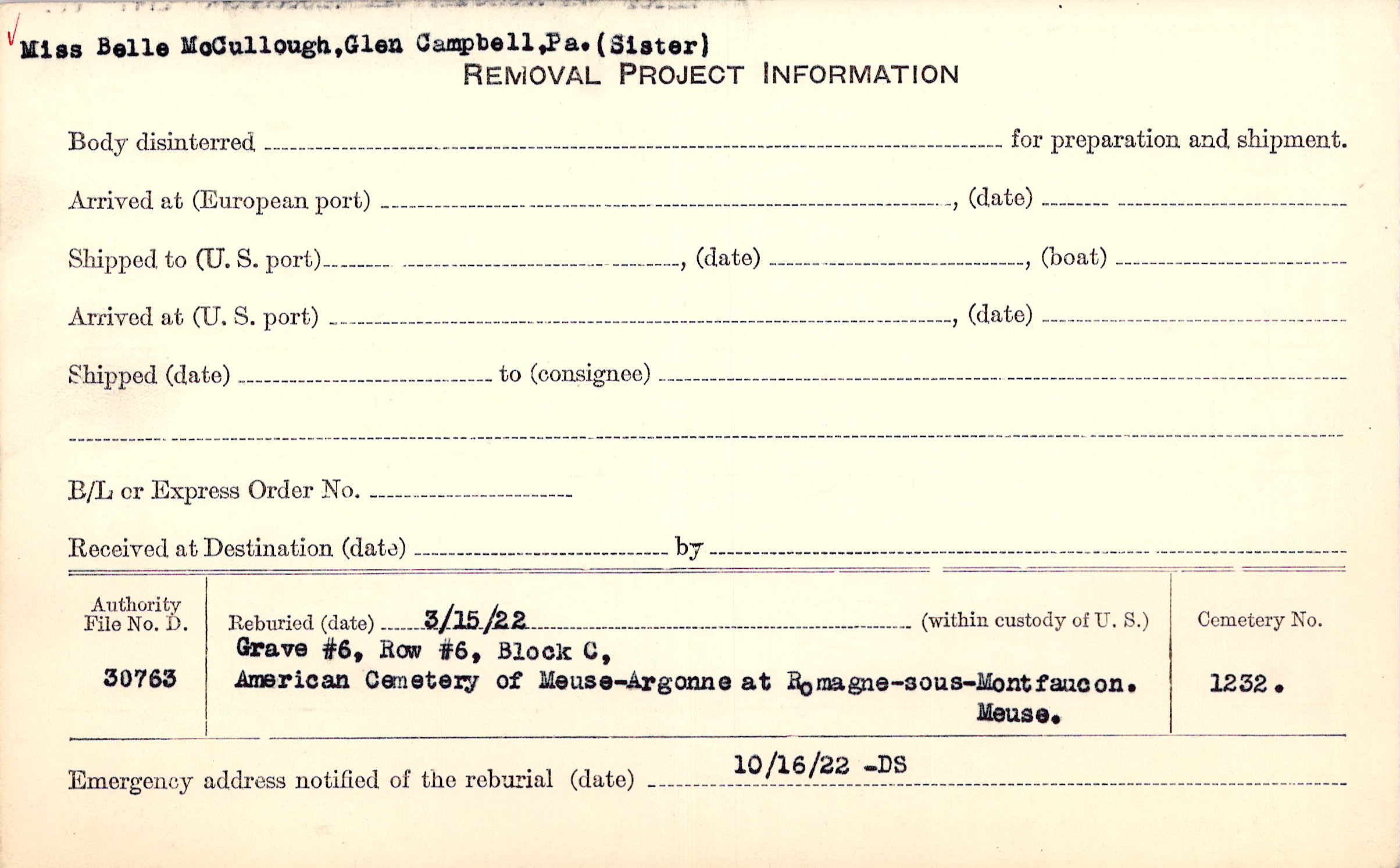 | Permanent Burial in Foreign Cemetery |