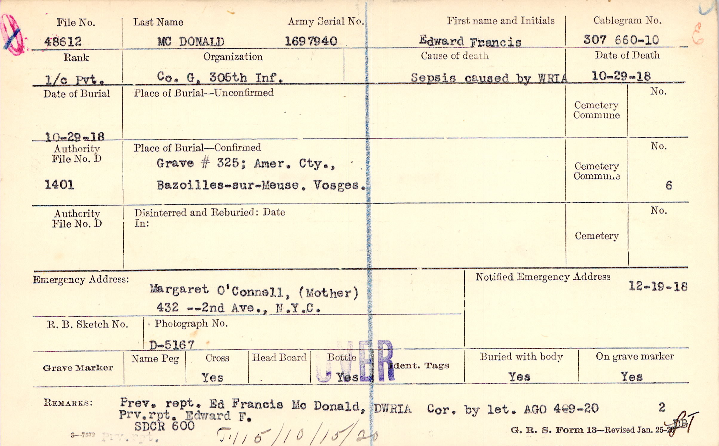 Grave #325, Amer. Cty., Bazoilles-sur-Meuse. Vosges