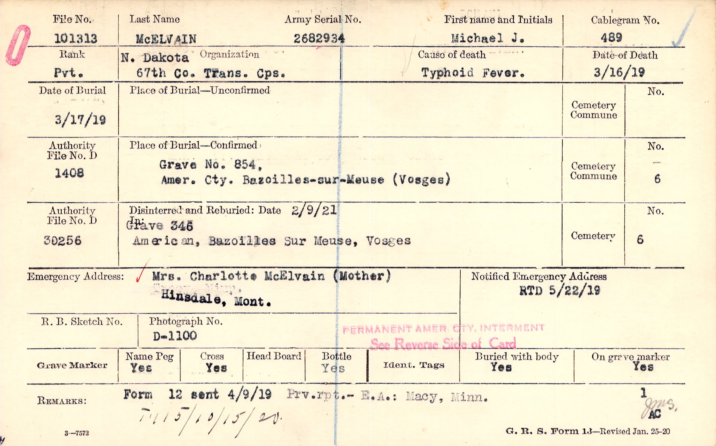 Mrs. Charlotte McElvain (Mother), Hinsdale, Mont.