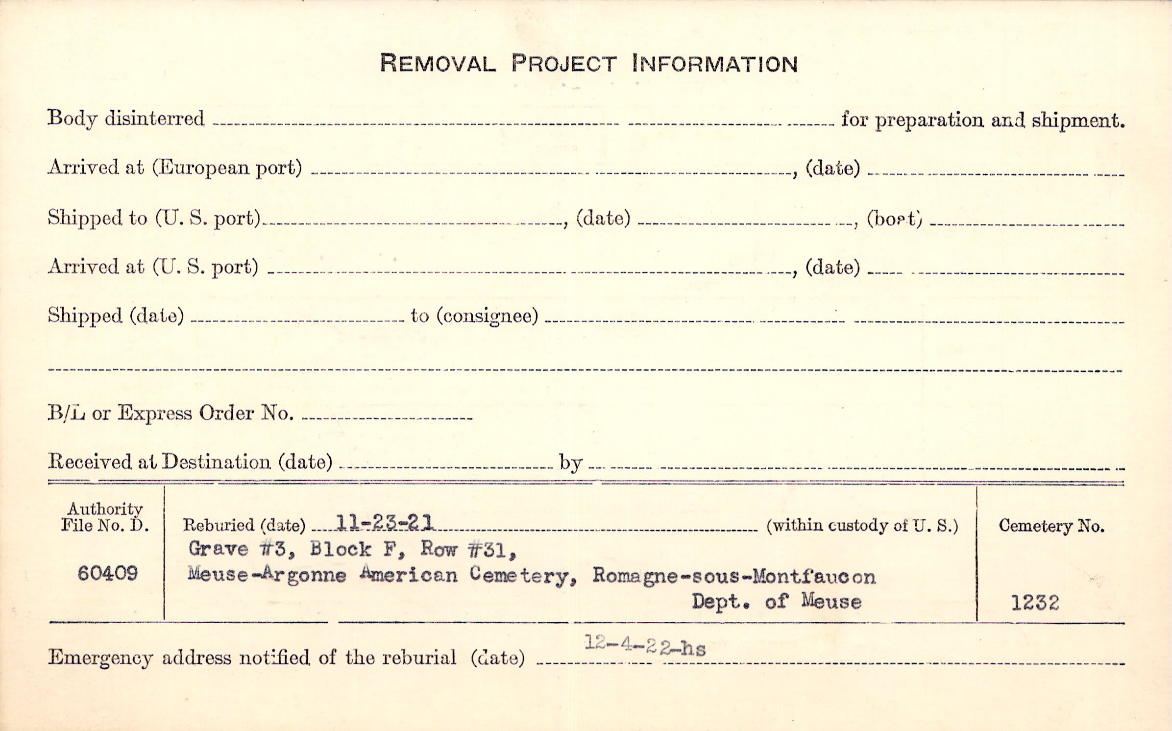 Grave 346, American Cemetery, Bazoilles, Vosges
