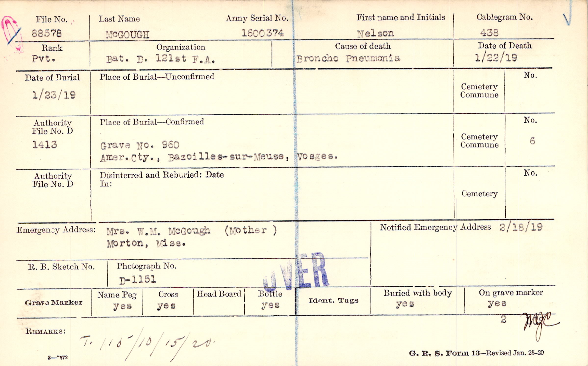 Grave 960, Amer. Cty., Bazoilles-sur-Meuse, Vosges