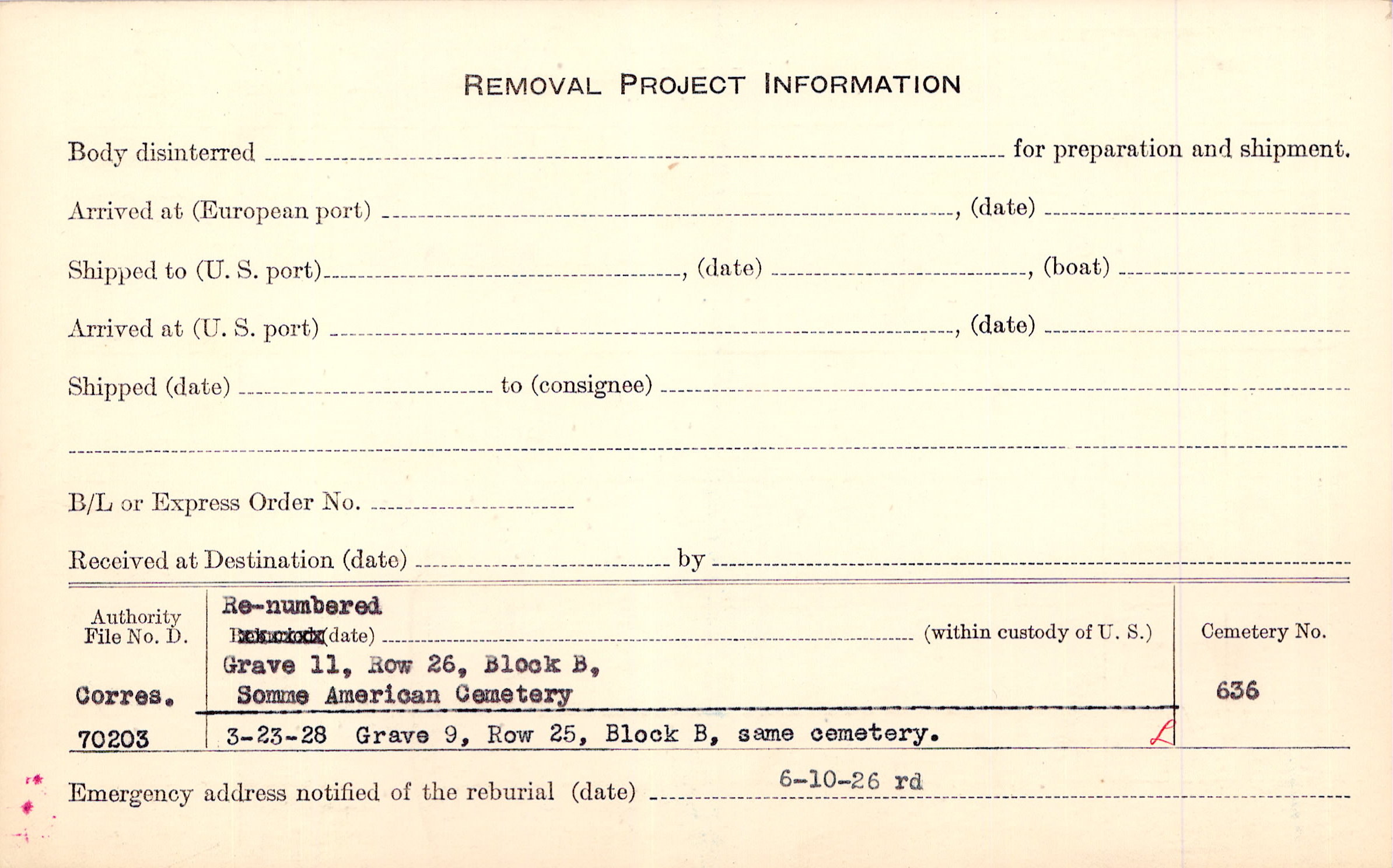 Prior Burial in Foreign Cemetery |