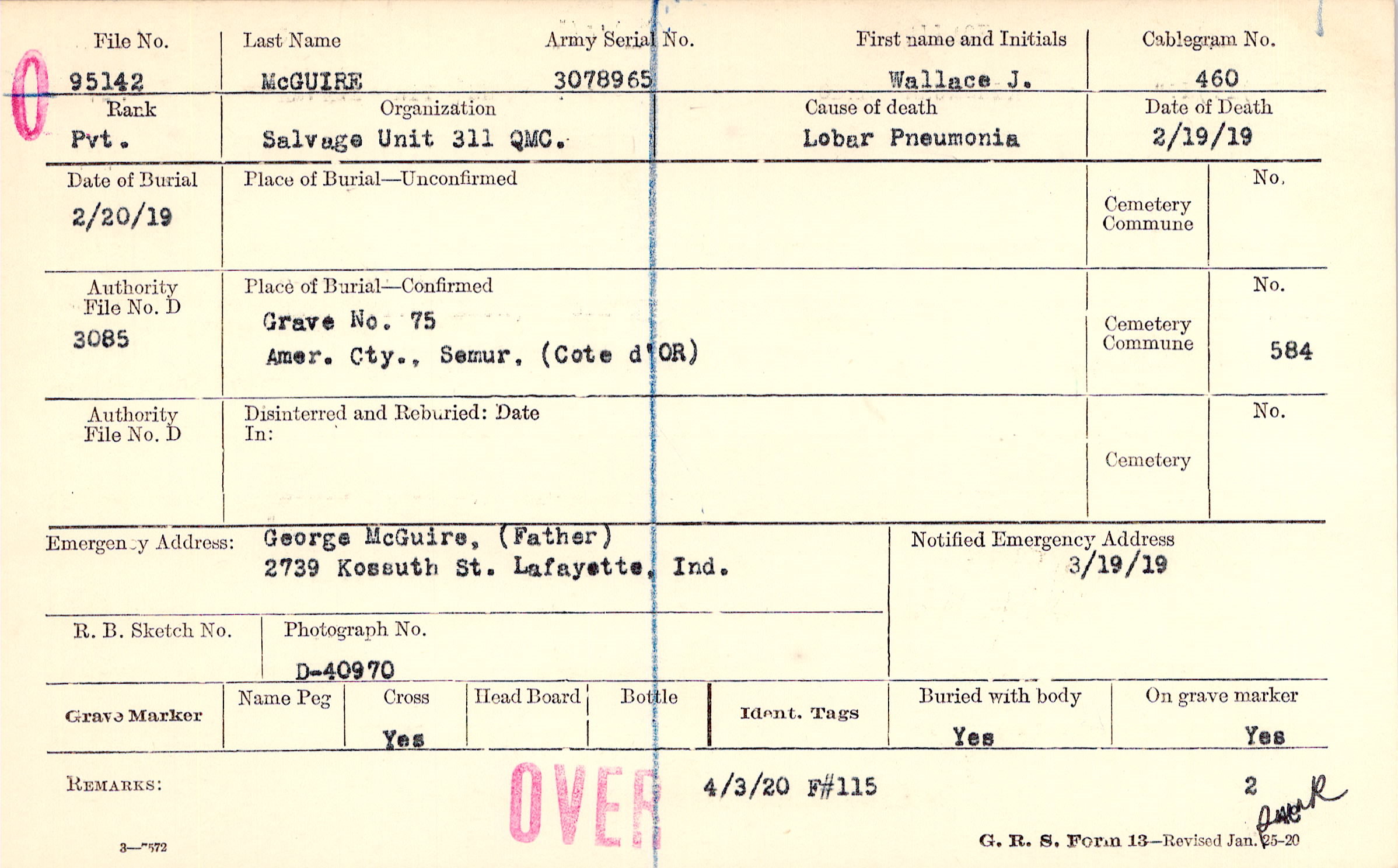 George McGuire, (Father), 2739 Kossuth St. Lafayette, Ind.