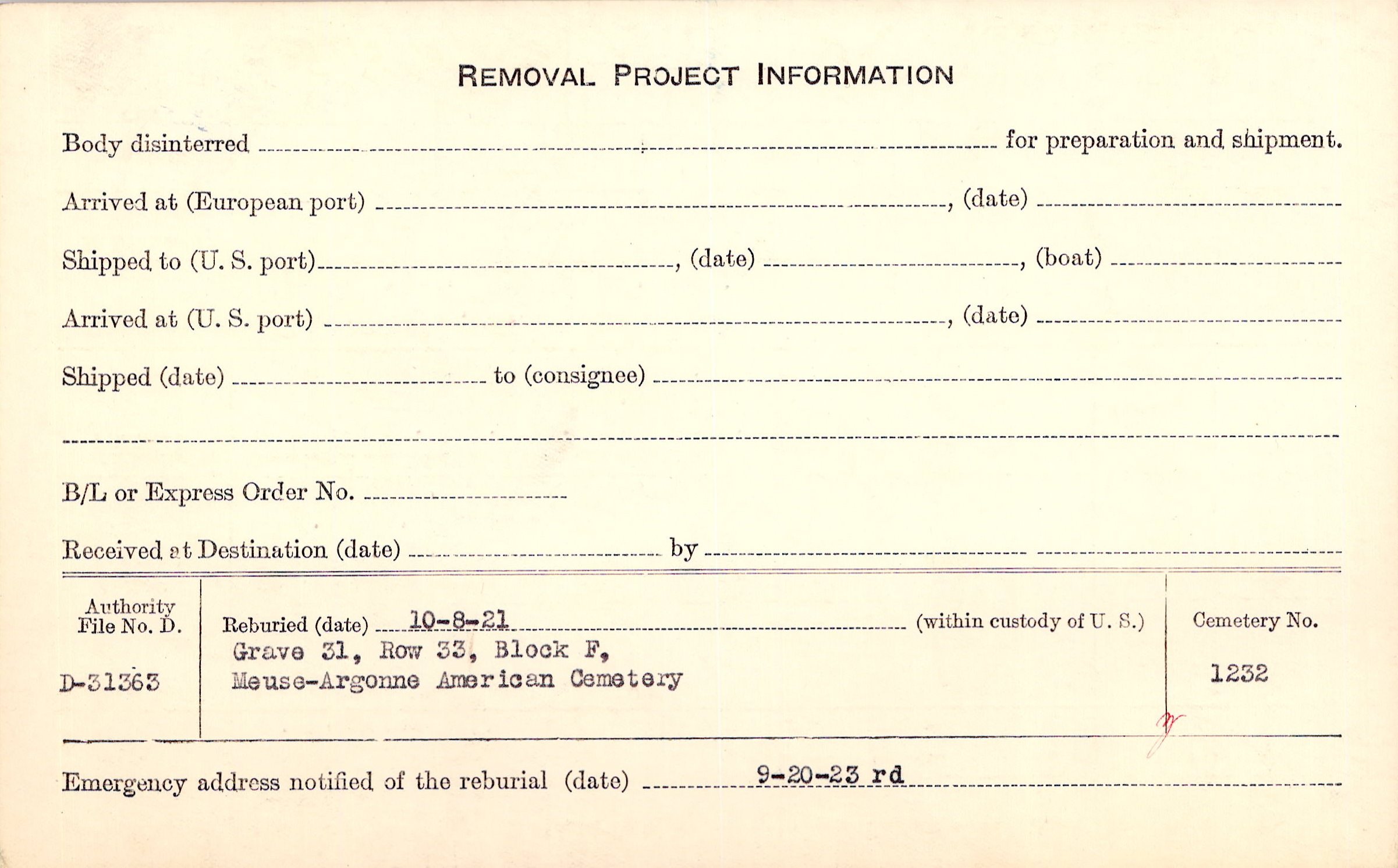 Grave 72, Sec.. E, Plot, 1 Amer. Cty., Les Islettes, (Meuse)