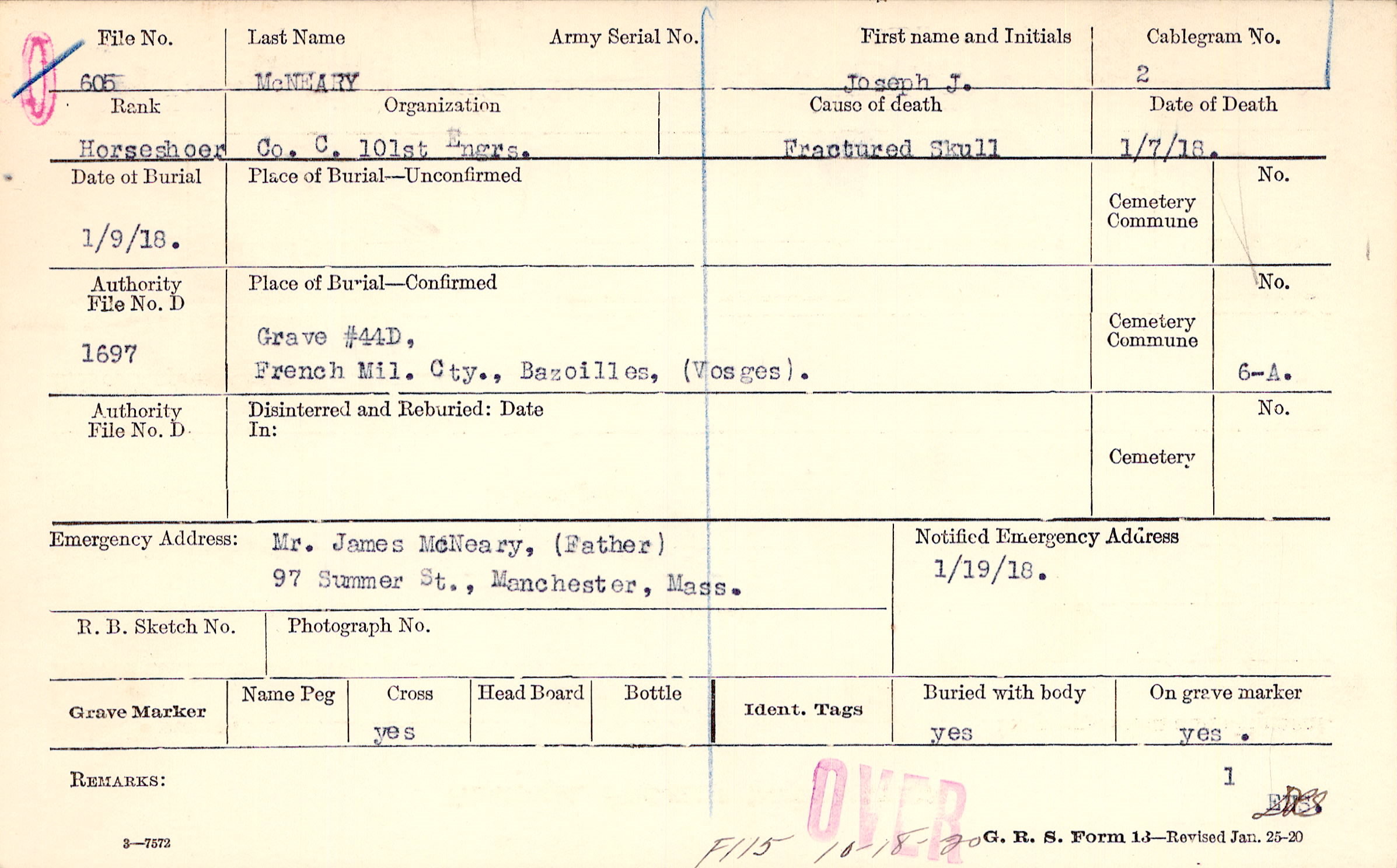 Grave #44D., French Mil. Cty., Bazoilles, (Vosges).