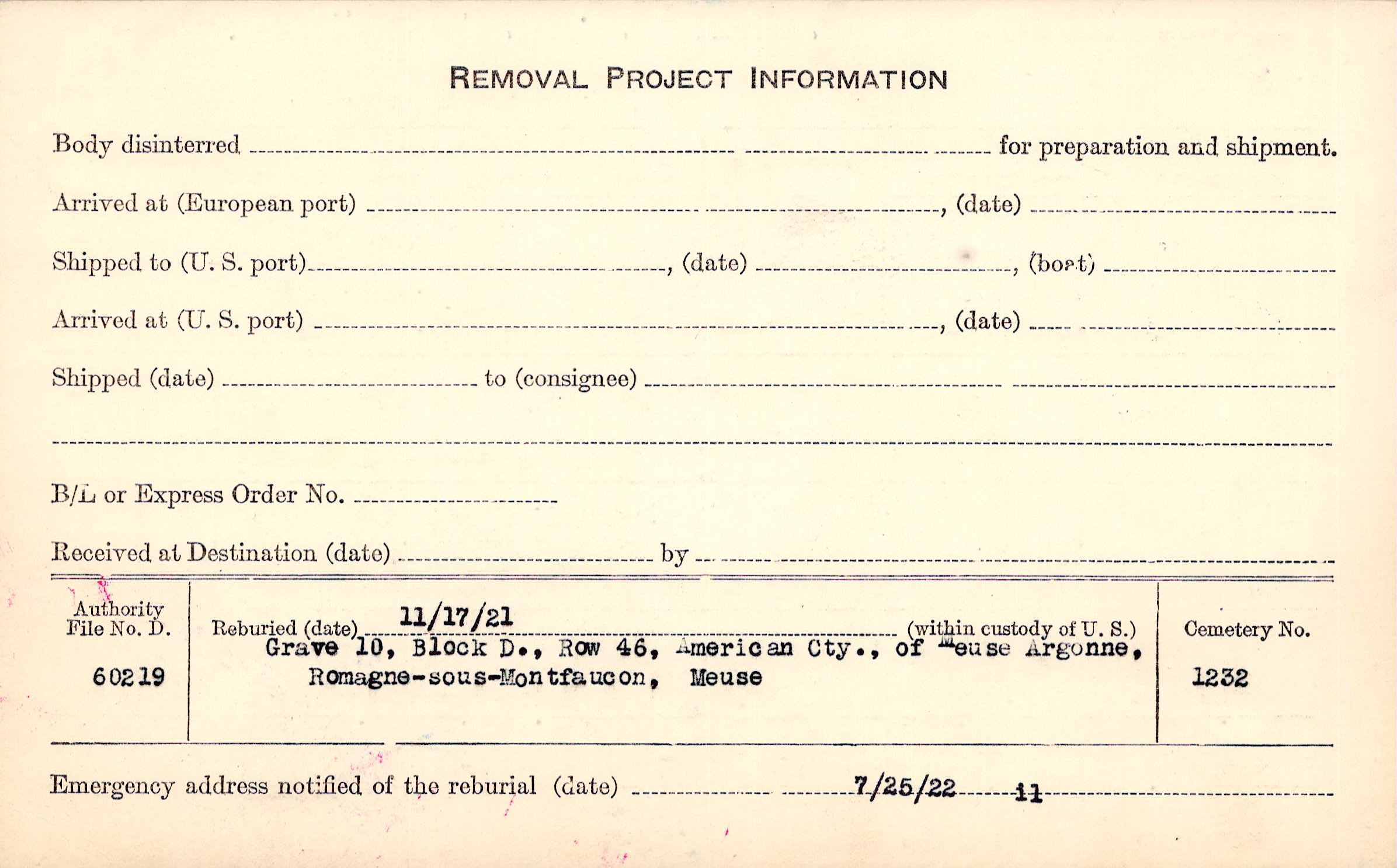 Grave #36D, French Military Cty., Bazoilles, (Vosges)
