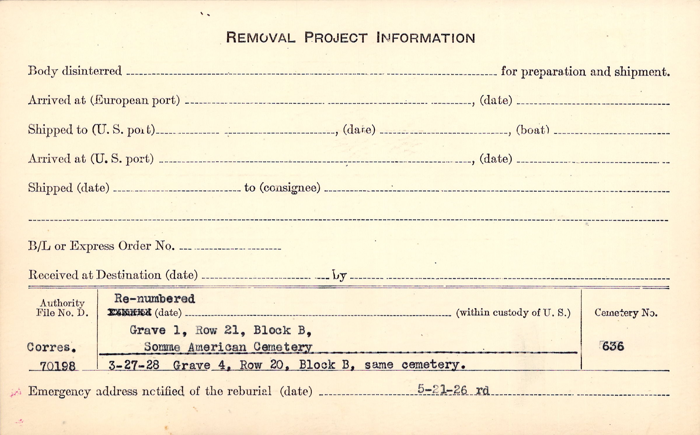 Prior Burial in Foreign Cemetery |