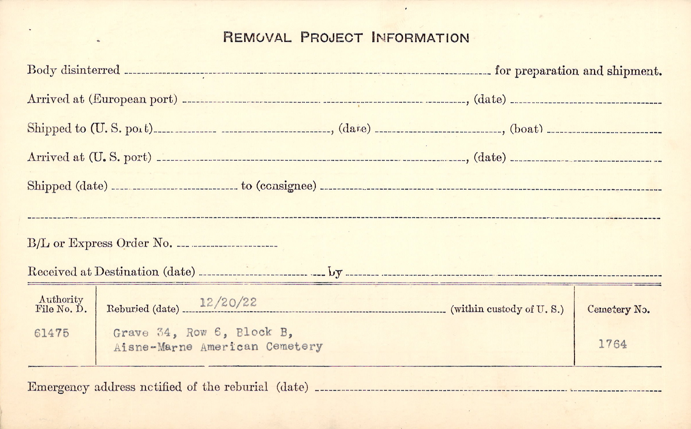 | Permanent Burial in Foreign Cemetery |